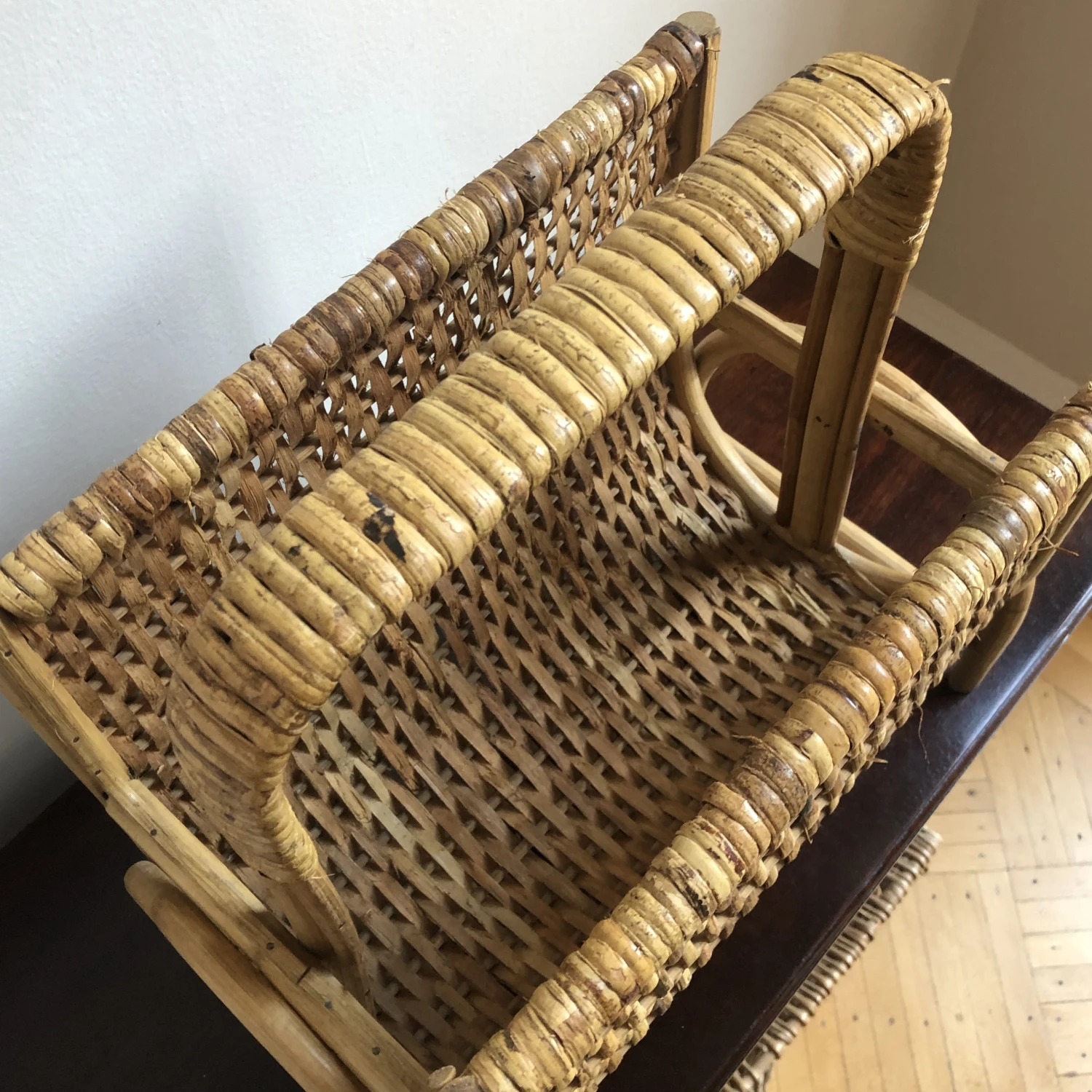 Offering a mid-20th century bent bamboo & rattan magazine rack with gorgeous texture and a soft, warm patina. This magazine …