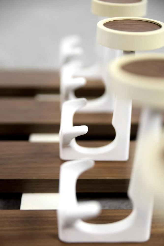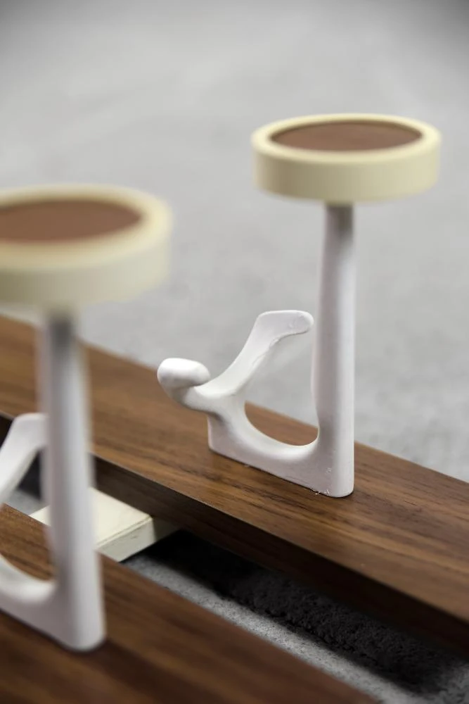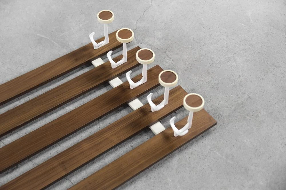 This coat rack is in original vintage condition. It has age-related signs of use, scratches and traces of repairs.