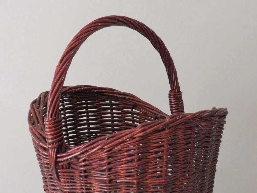 The umbrella stand ends in an oval shape and is fitted with a handle. The item is in good condition.