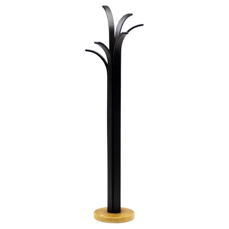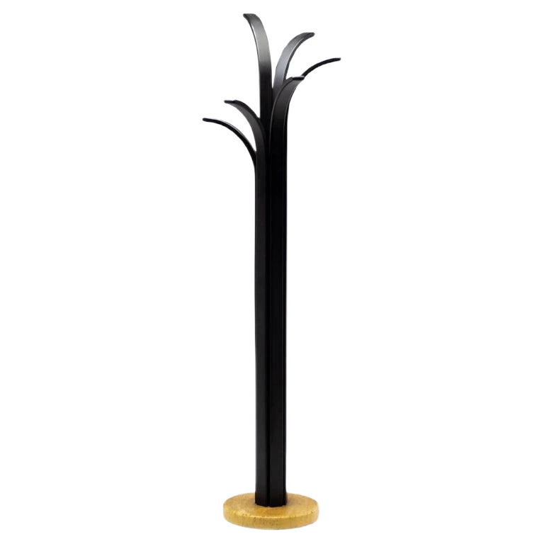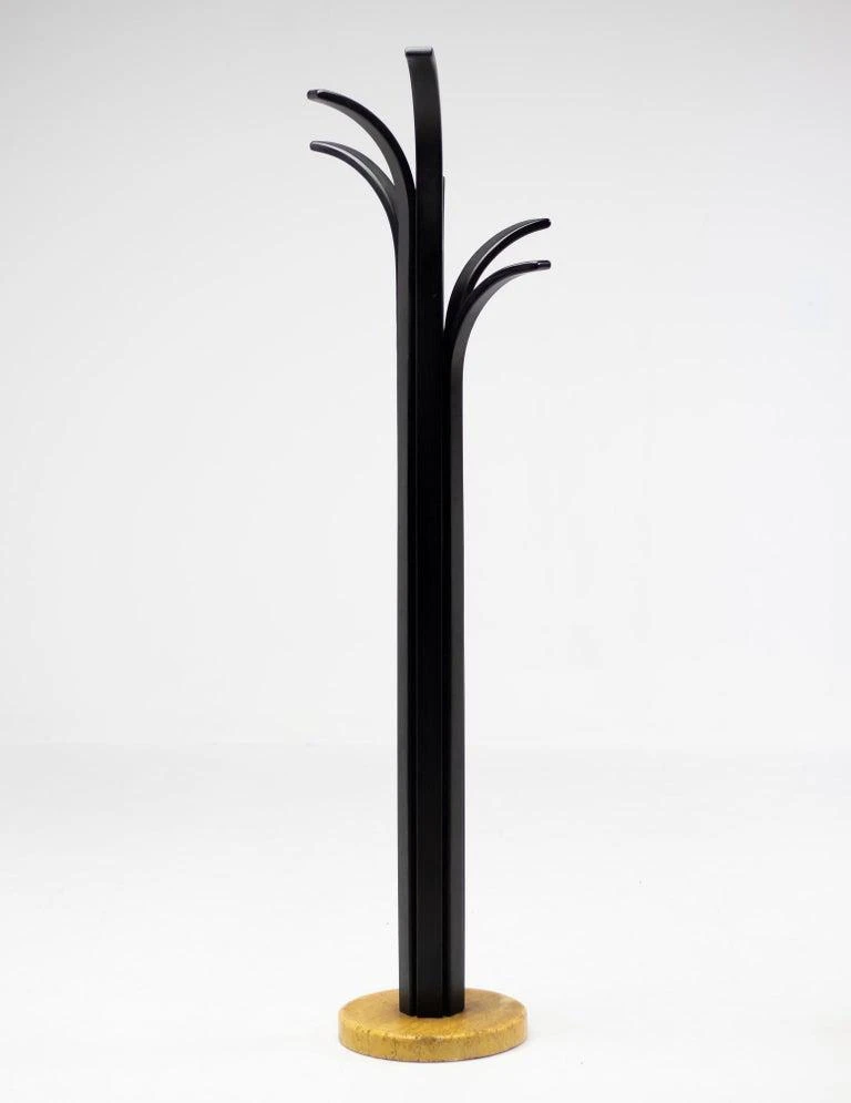 Excellent example of Italian Post Modern design. Base in travertine, rack in black lacquered plywood slates. Purchased in Italy in the 1980s. I have official proof of authenticity such as vintage catalogs,