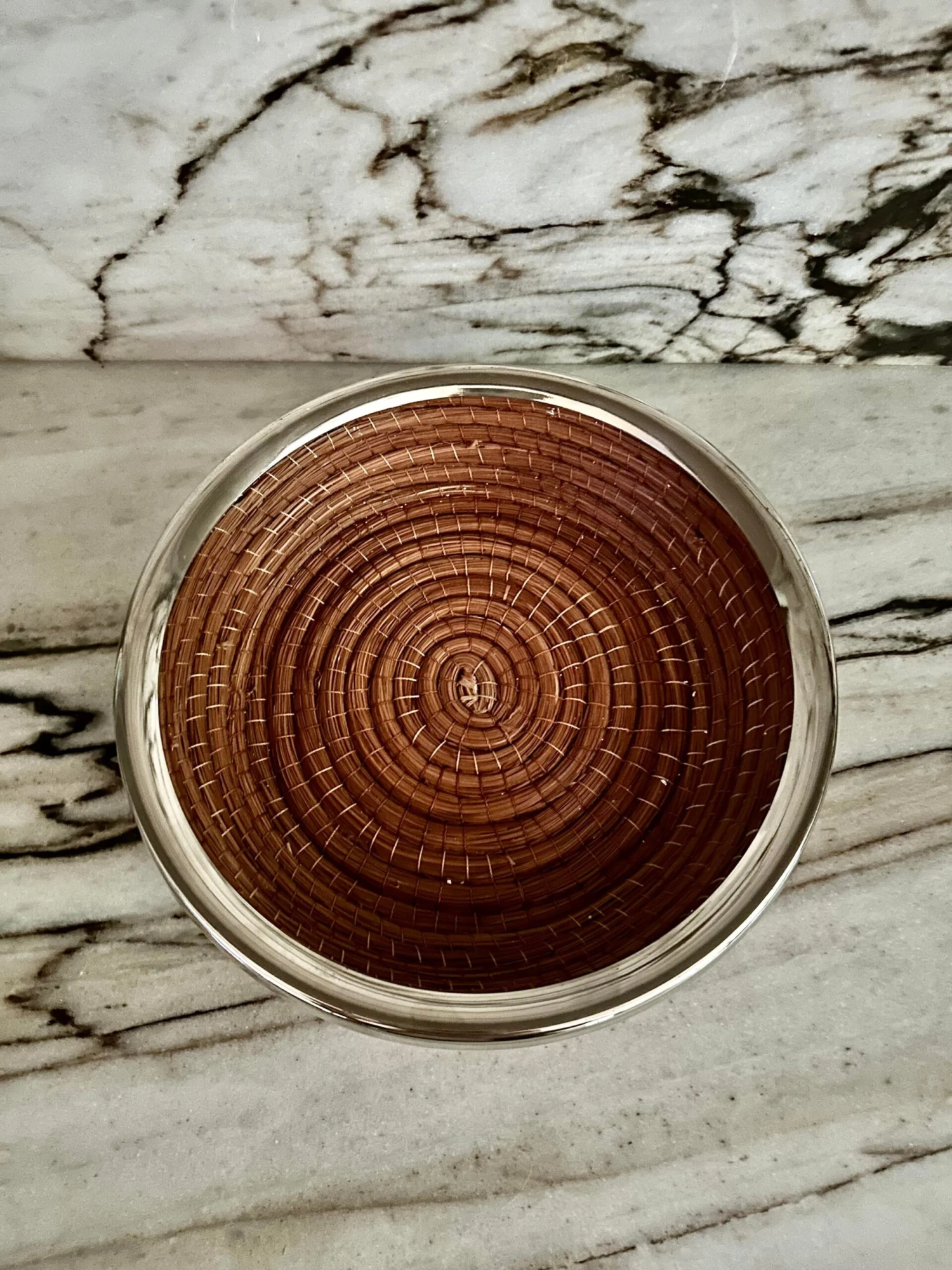 Set of three handmade sea grass and silver metal