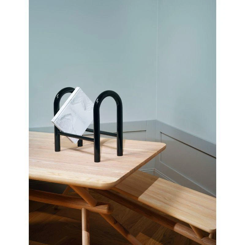 Reading horse, book stand by Made By Choice with KatrÃn ÓlÃna Dimensions: 33 x 20, H34 cm Materials: Birch plywood Also available: natural oak / painted black or custom colors on request. Icelandic designer KatrÃn ÓlÃna has collaborated with Made by Choice to create home products that celebrate reading. Small Reading Horse is a small portable Bookshelf. It is a simple construction of two 35mm bent laminated plywood tubes held together by two bars. In Icelandic, a reading horse is someone who loves to read. Books are portals to other worlds. Icelandic culture has its roots in literature and Icelanders are avid readers and book lovers. Around 10% of the population will publish a book in their lifetime. About Made by Choice: Nordic Happiness. Nordic Happiness is our grand theme and guiding star. Studies show that Nordic people are among the happiest on Earth. Nordic happiness is composed of authentic values and sustainable choices. The vision of Choice is based on the added value of collective creation while promoting sustainable Nordic values through authentic design. Rooted in the traditions of Finnish woodworks, Made by Choice is a creative powerhouse of collaborative thinkers, believers and makers, establishing a global brand for the 21st century. Committed to producing durable, bold and innovative designs, we combine contemporary woodworking methods and modern technology. Halikko is home to our 4000 square metre campus where we turn abstract concepts into tangible objects. Our team in our office in Helsinki coordinates all operations and installations. Made by Choice’s agile, purpose driven approach means all new products are developed on demand, for a specific project and need, and carries the authentic story of it’s reason of existence. Our products are developed and manufactured at our own factory in south-western Finland by some of the best craftsmen in the world. Choice is inspired by heritage and Nordic urban lifestyle. We are driven to explore the boundaries of our discipline to create new narratives. Choice collaborates with leading designers and ambitious interior architects on site-specific projects to create new urban spaces. Choice was founded by Lasse Laine, Sebastian Jansson and Niclas Ahlström – based on the common vision and mutual values to create a distinctive, value-driven brand and a new design heritage. Made to order creations can be done: