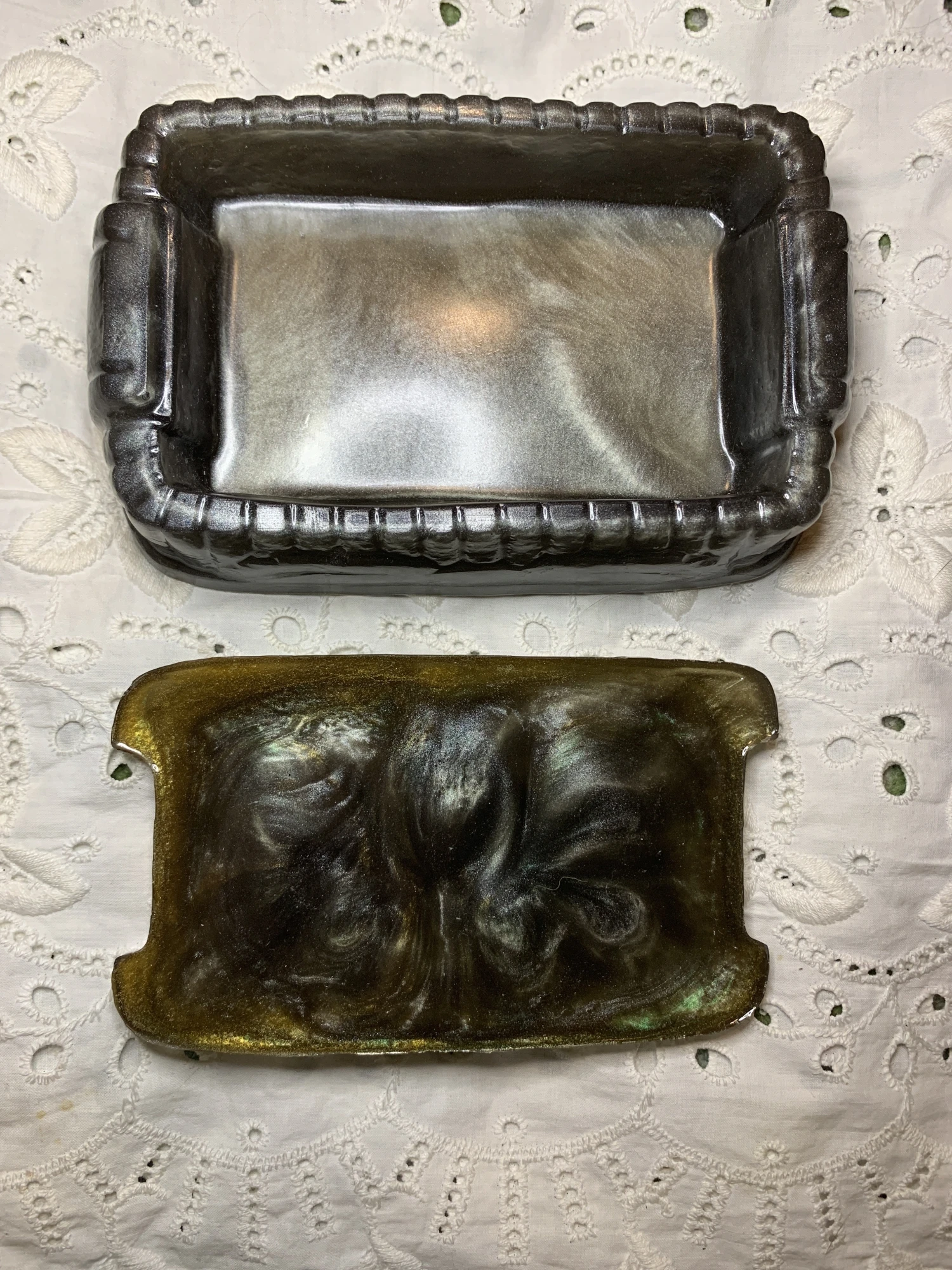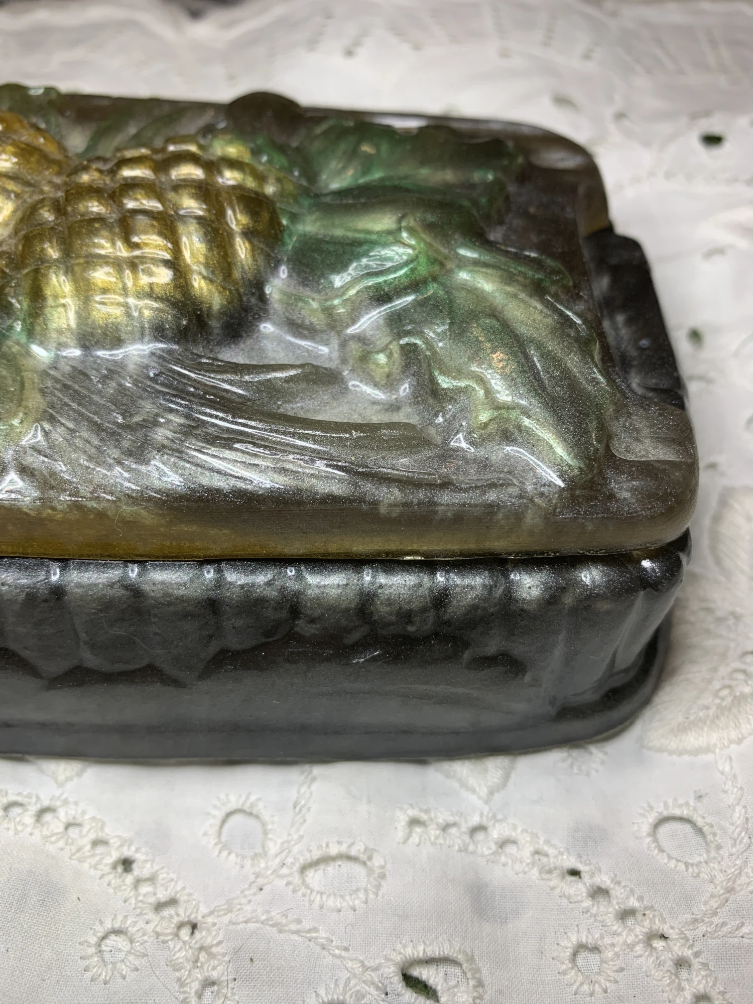 Vintage Resin Pinecone Playing Card Box Trinket Box Grey Silver Decorative.