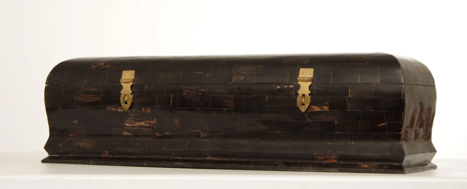 High Quality Jewelry Casket with Polished Hardwood Inlay and Brass Hardware