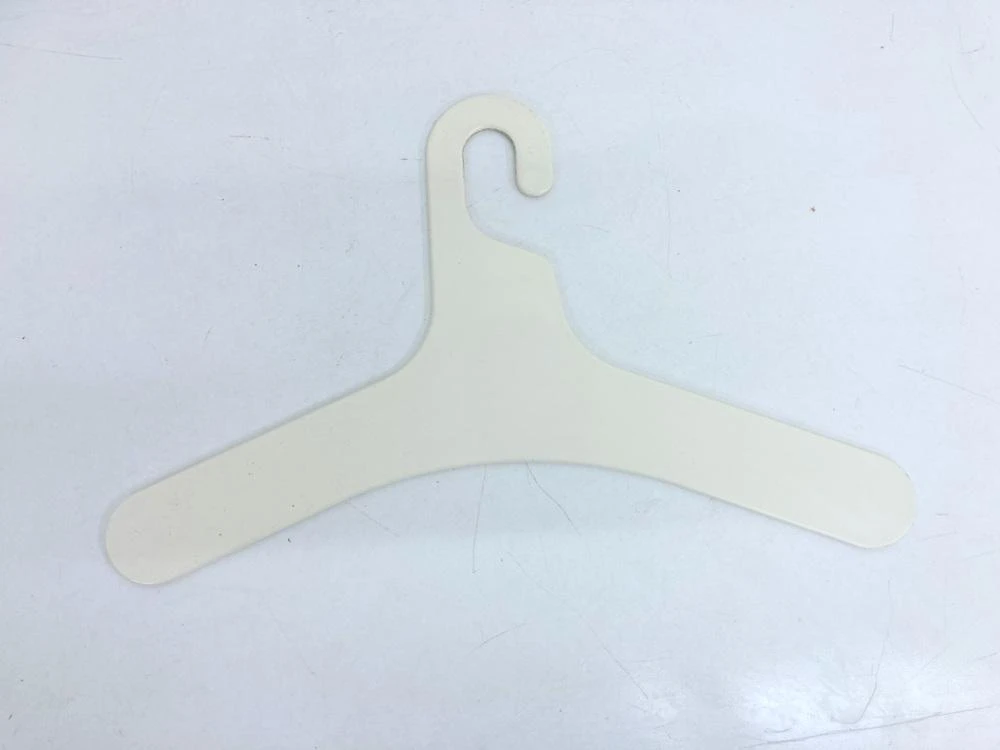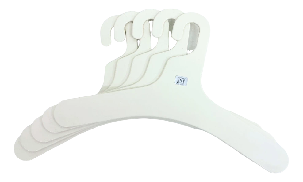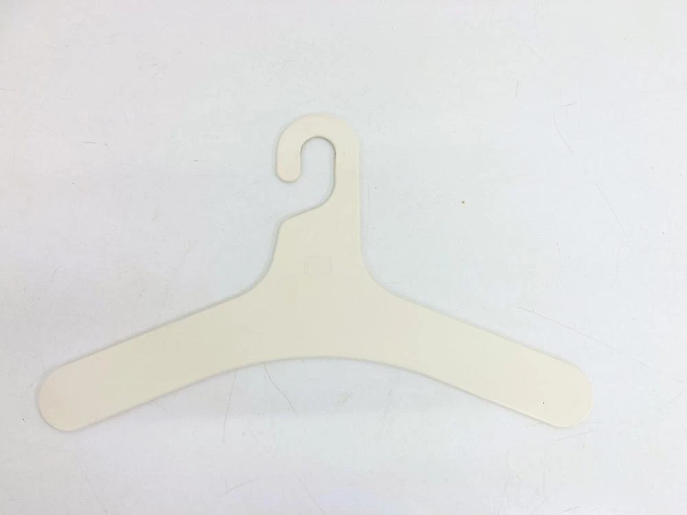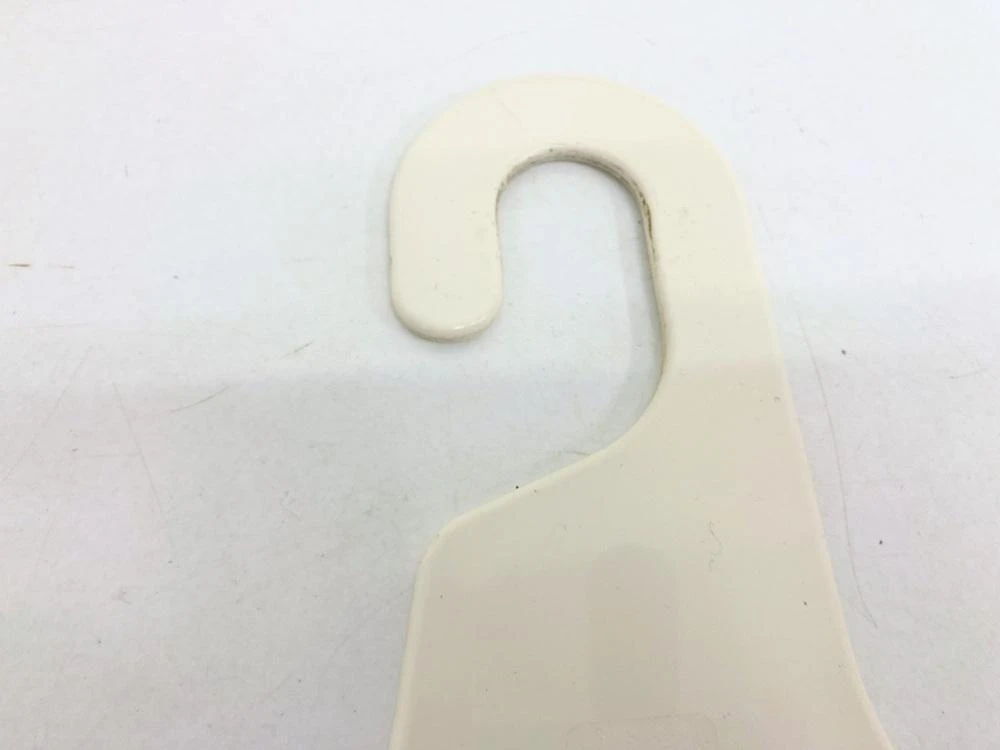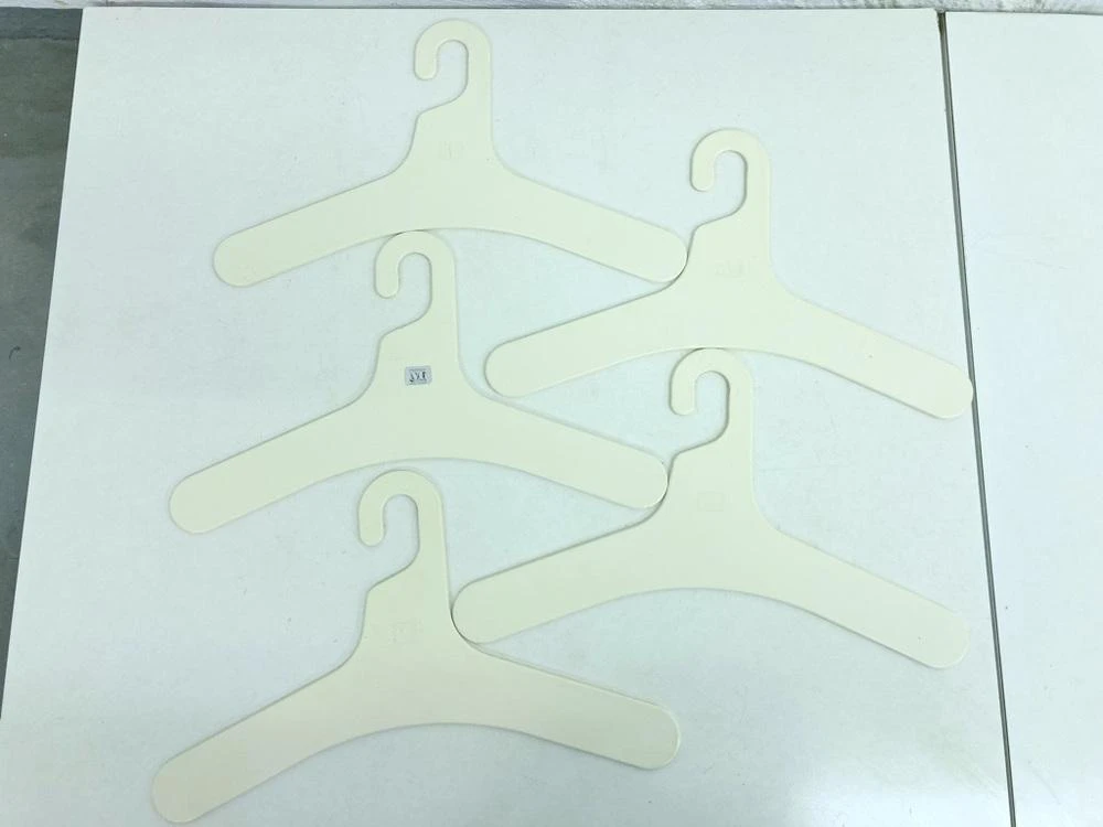 This is a set of 5 hangers from the 1970s. It is made of plastic and is in cream white.