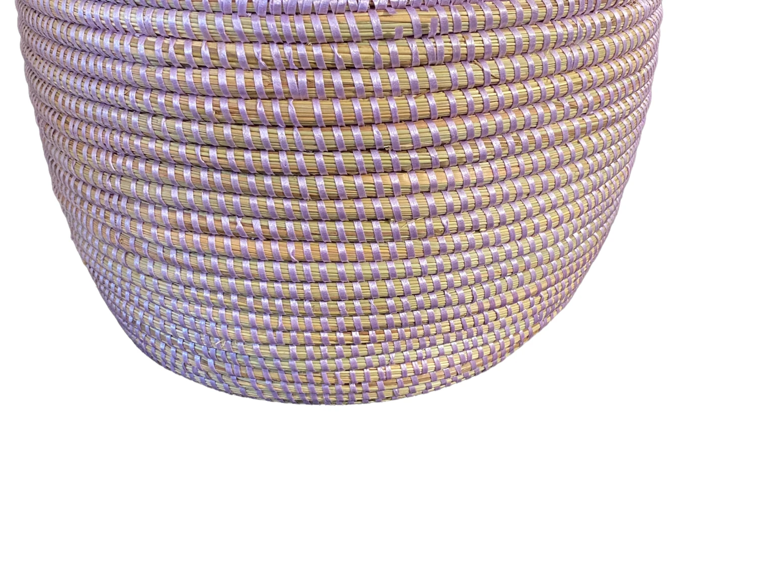 Superb Basket with Lid from Senegal West Africa, could be a laundry hampers and are handwoven by an association of more than 100 rural Wolof women in Senegal Traditional African handmade pieces are not exactly alike. The patterns vary from one piece to the next. They’re great for decoration of your home or makes a wonderful gift for someone special 14″ h by 13″ D