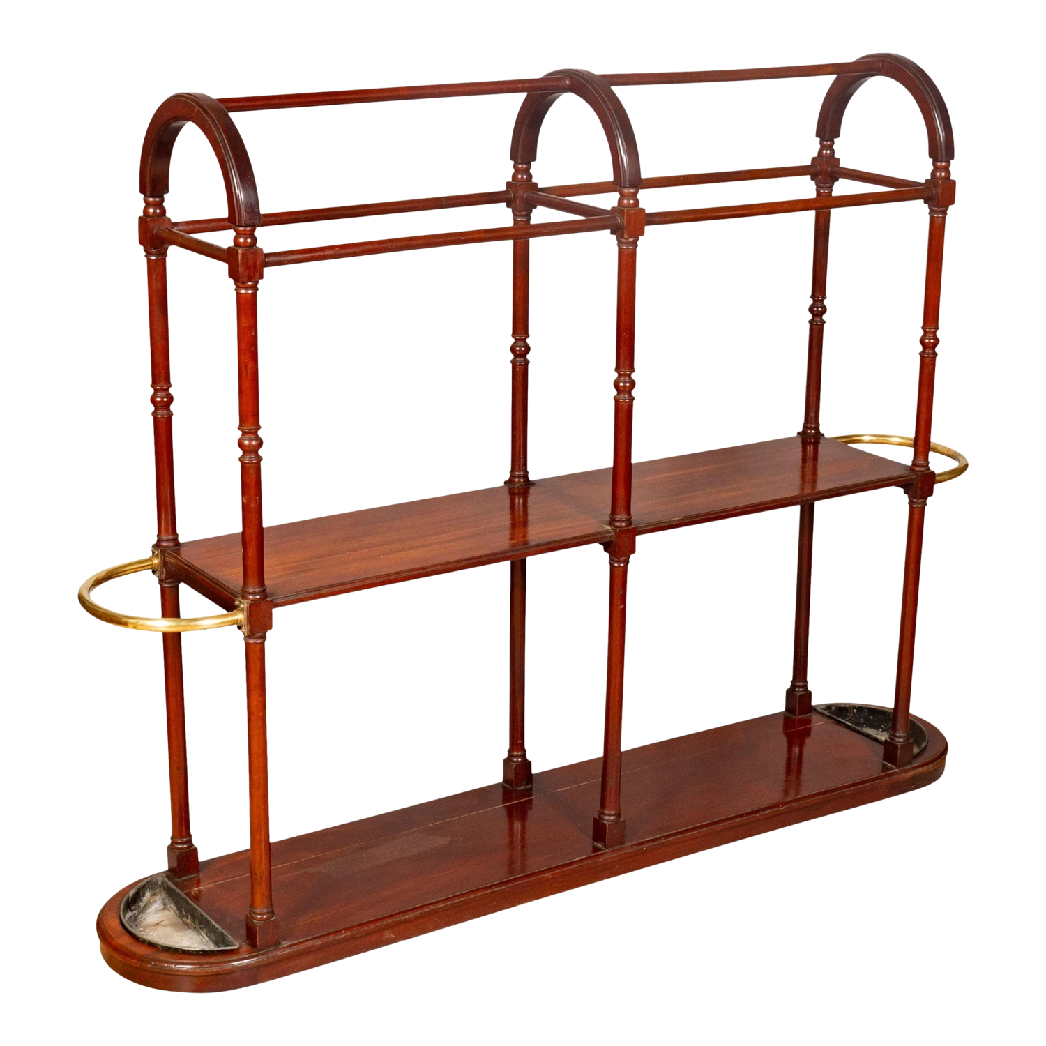 With arches and bars for drying clothing over shelves for shoes and end racks for umbrellas.