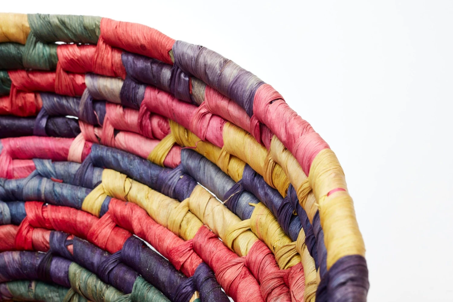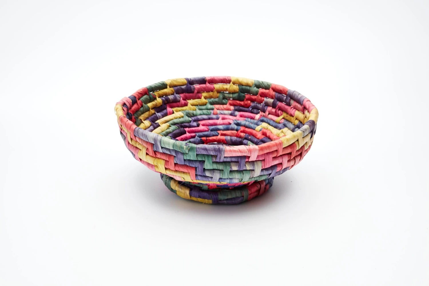 Fun and festive vintage baskets in rainbow colors from the 1980s.
