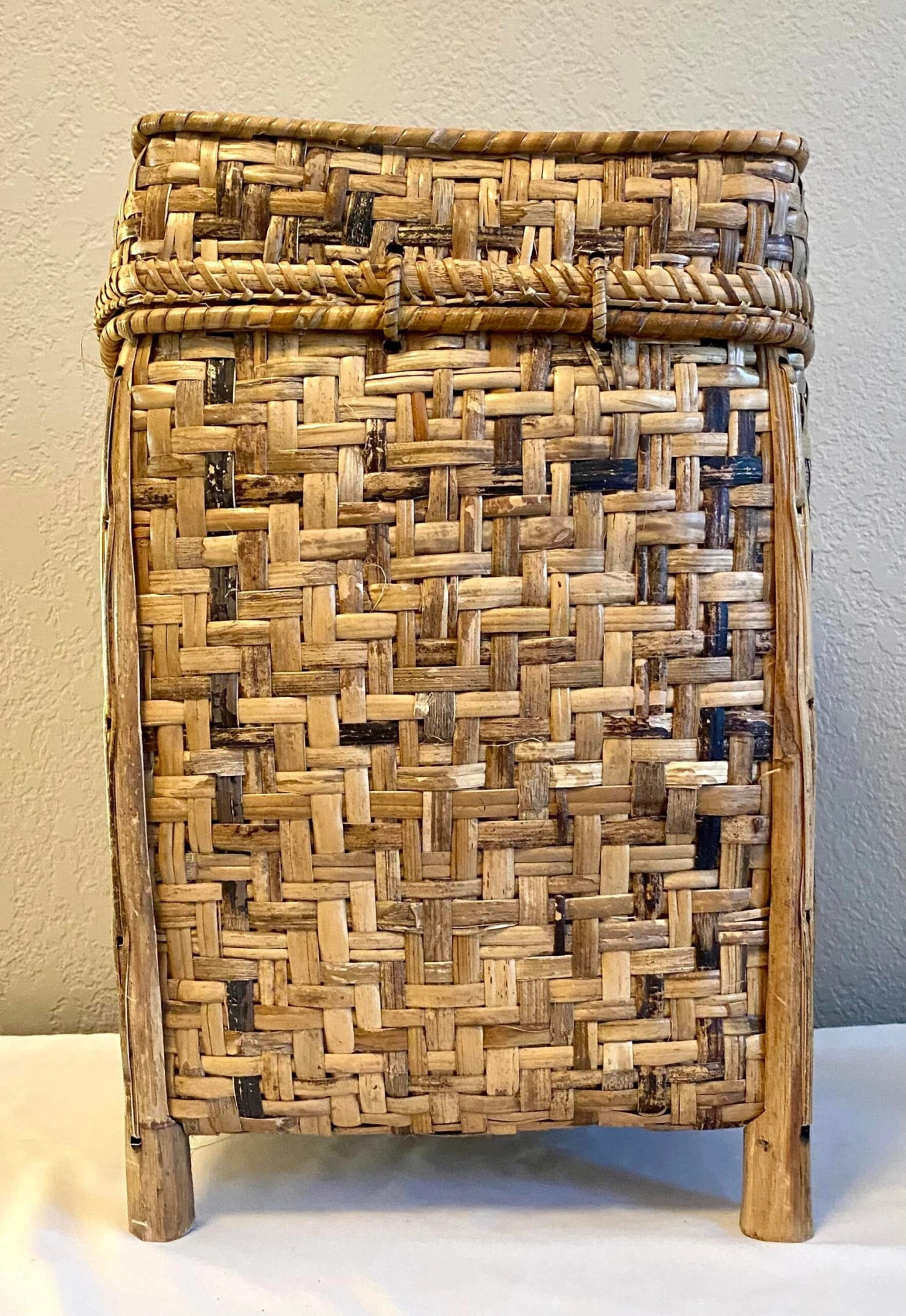 Fantastic piece features a rattan handcrafted weave, bamboo legs/feet and attached lid with latch. Clean lines and natural fibers, makes …