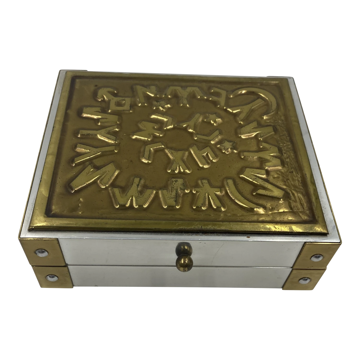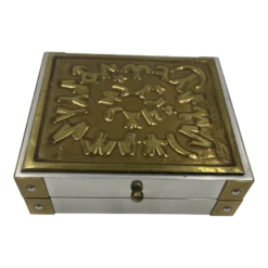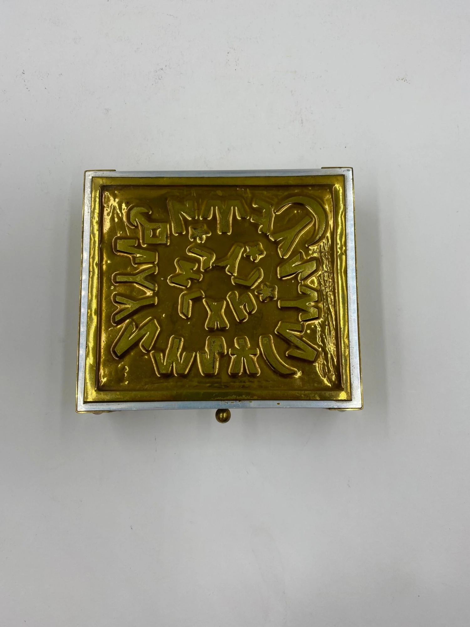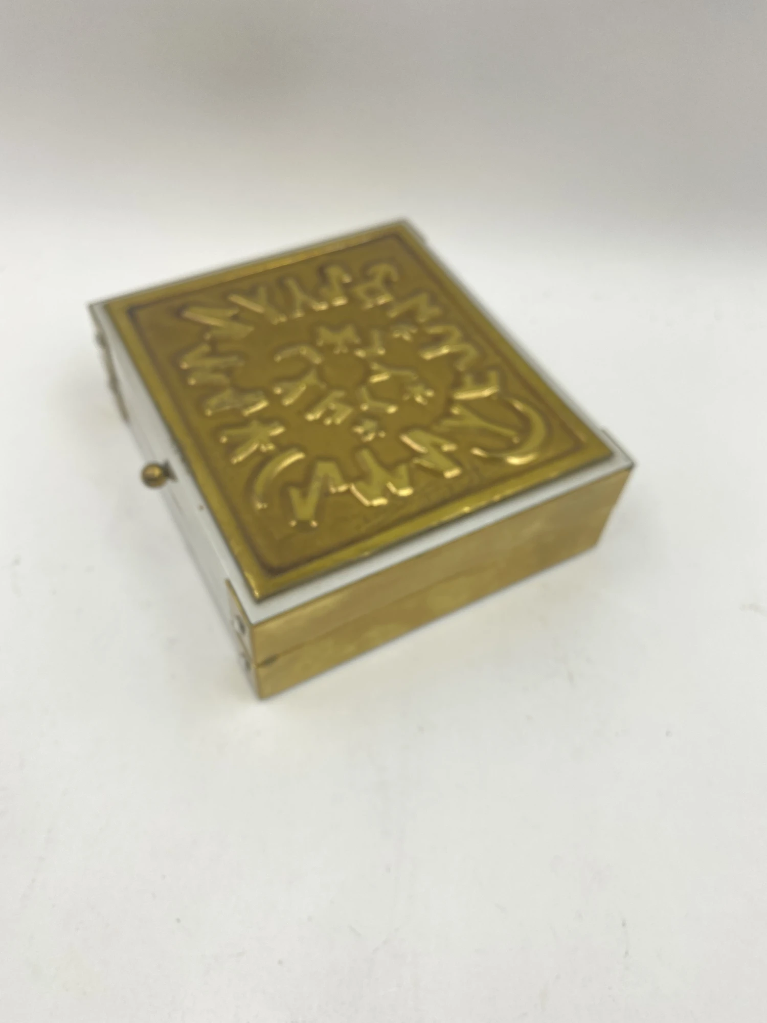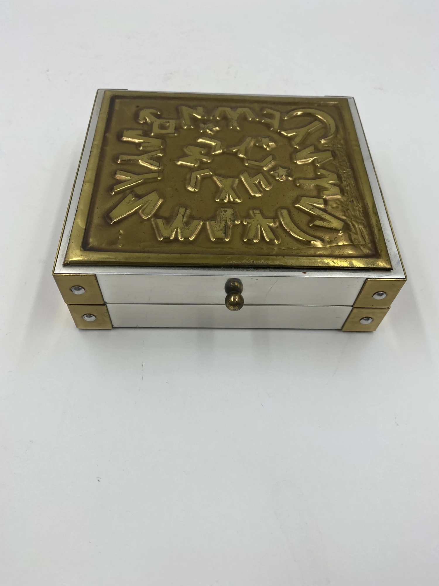 Brass Plated valet box or cigarette box for tabletop or dresser. Has hinged top & burgundy velvet lined interior and …