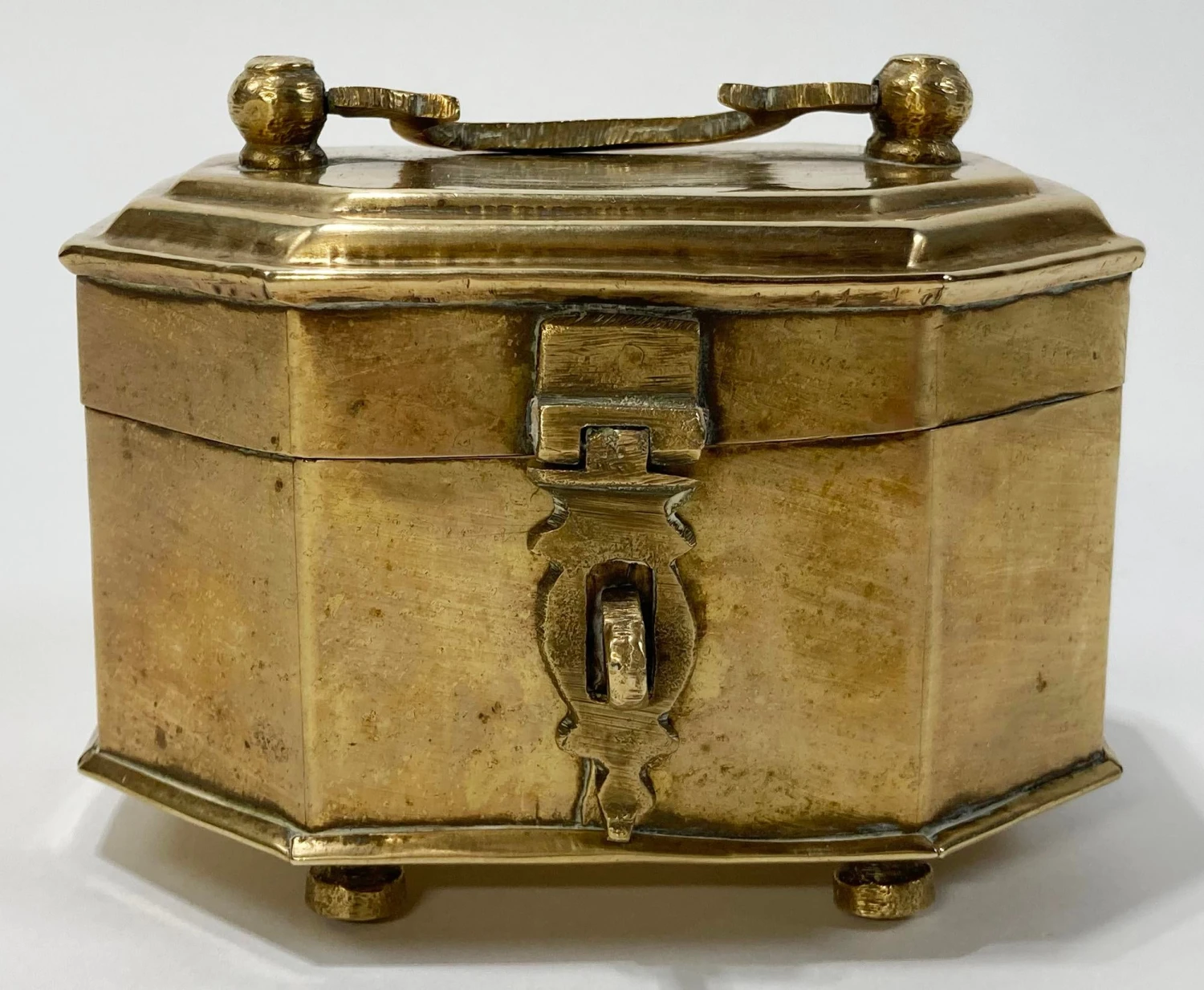 Vintage decorative hinged lid brass trinket box with front clasp and handle. Very similar look to traditional “cricket boxes” but …