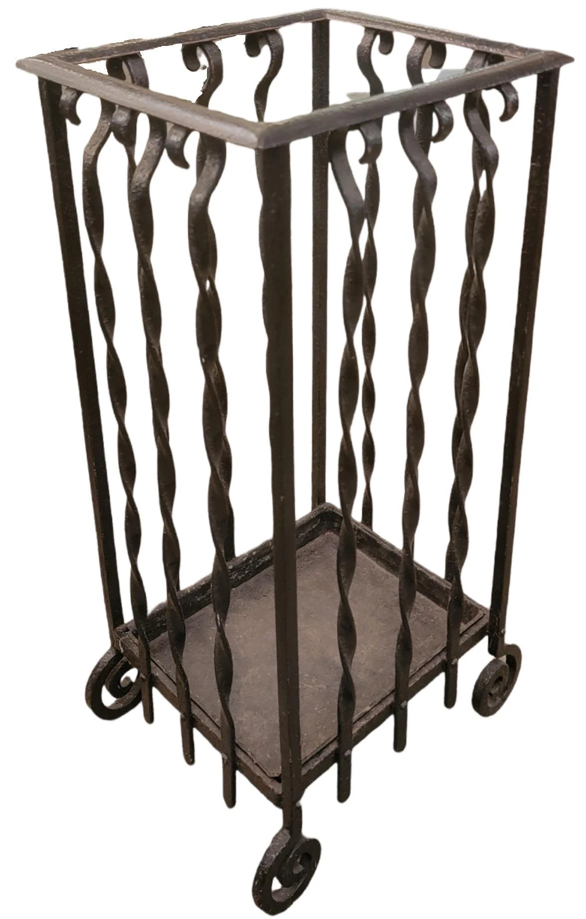 Antique early 20thc Cast Iron Planter/ Umbrella Holder with removable tray at the bottom of the holder. This item has …