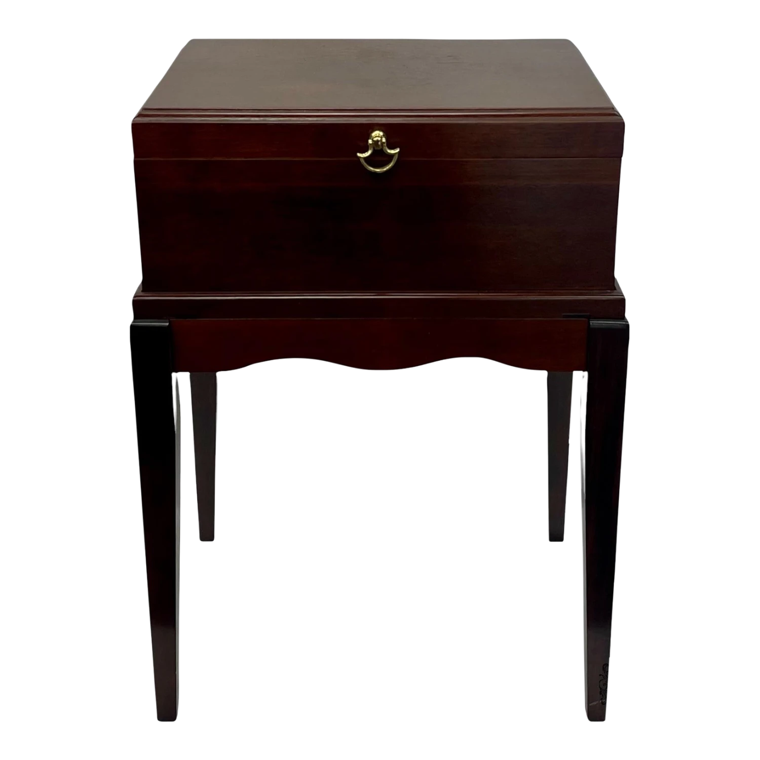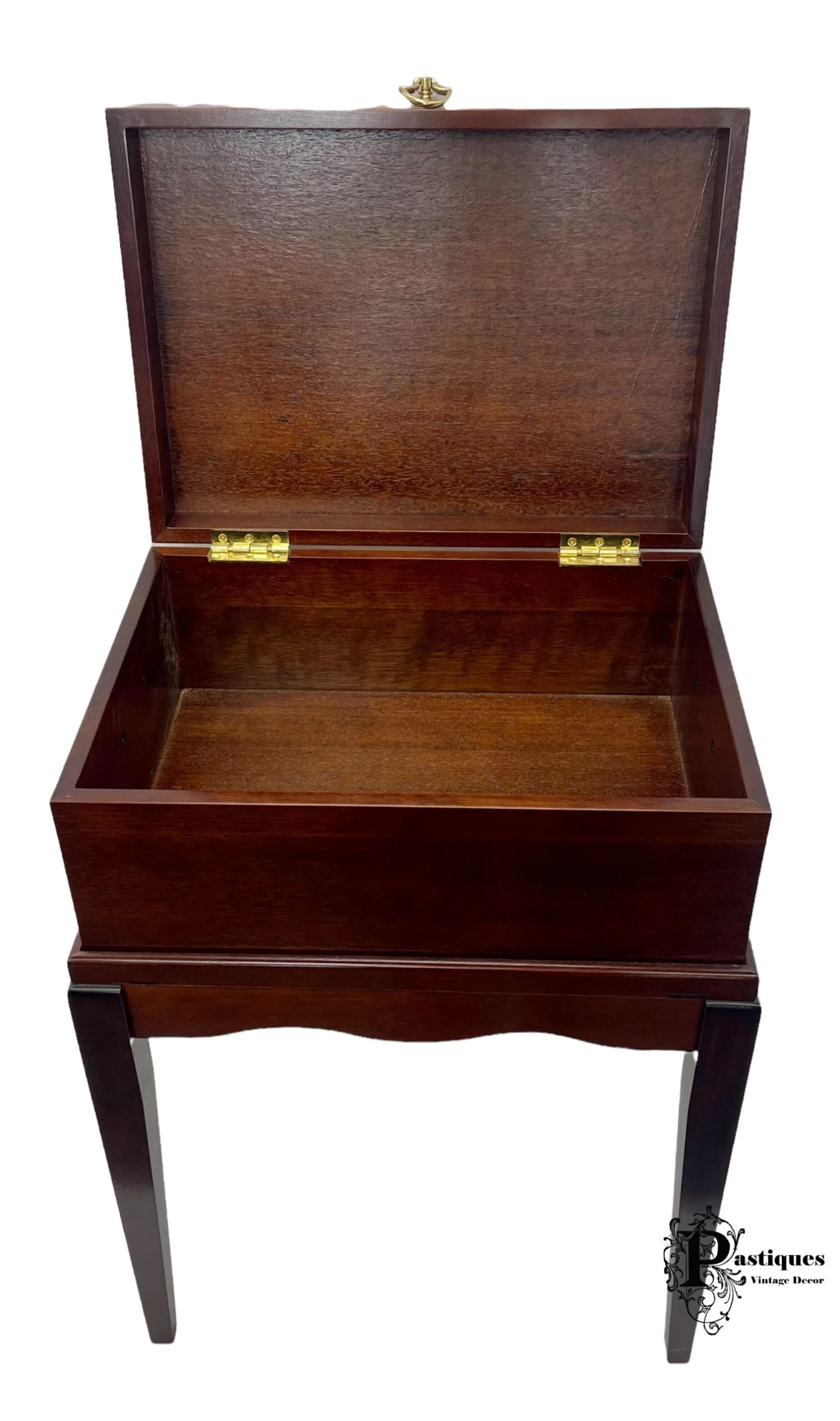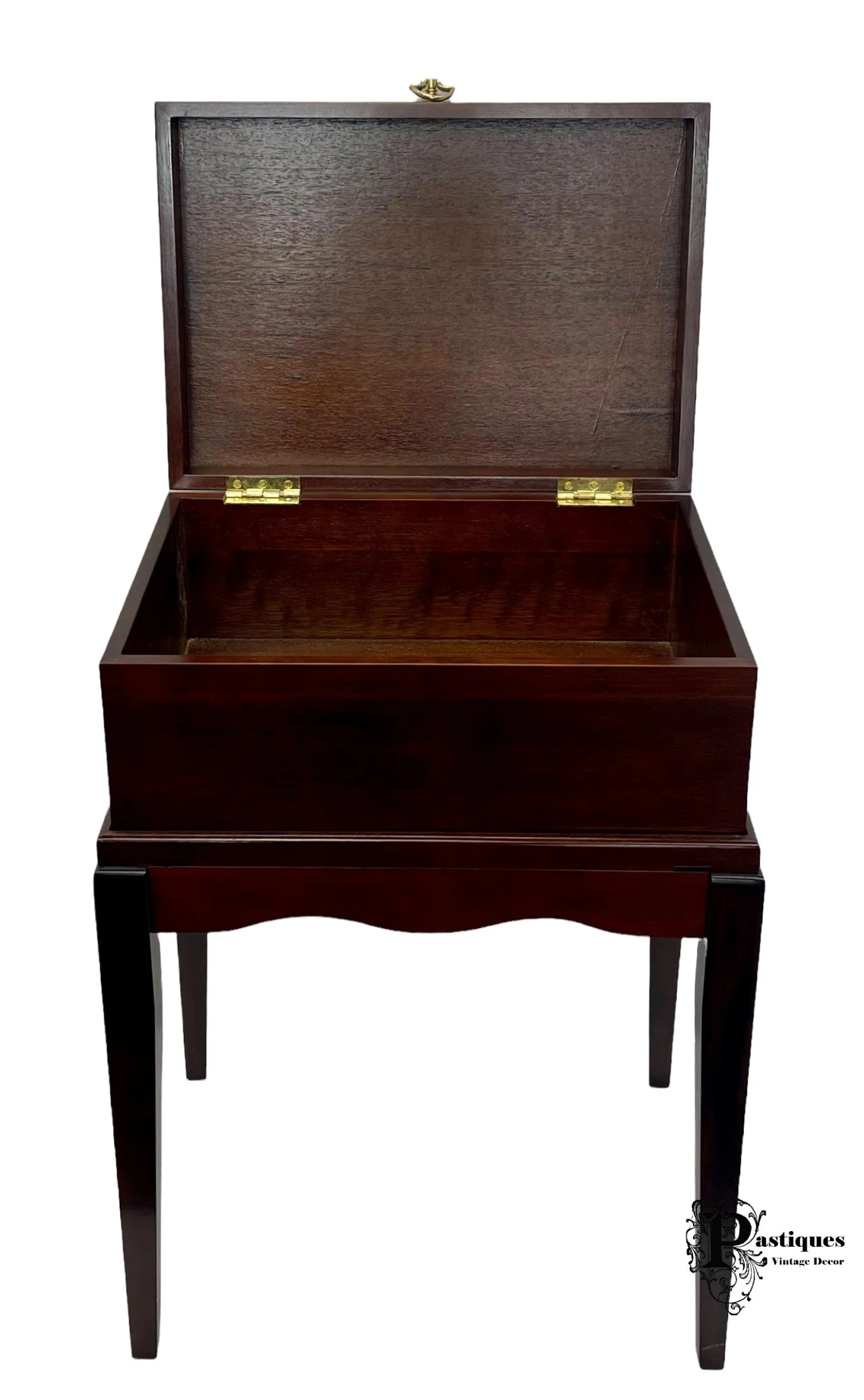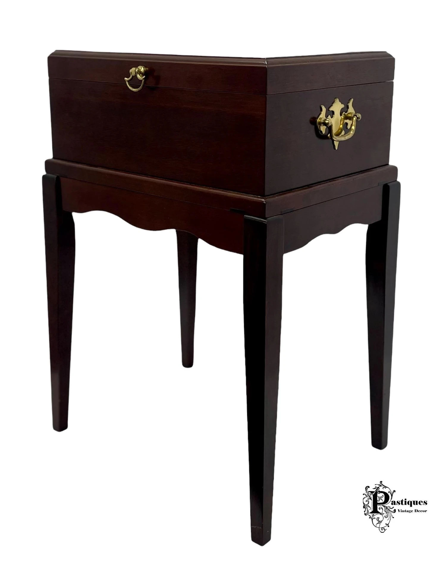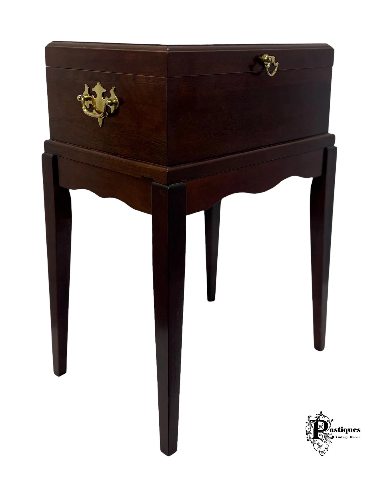 Vintage Chippendale Style Jewelry Box on Stand featuring High Quality Mahogany Construction, Brass Hardware, and Tapered Legs