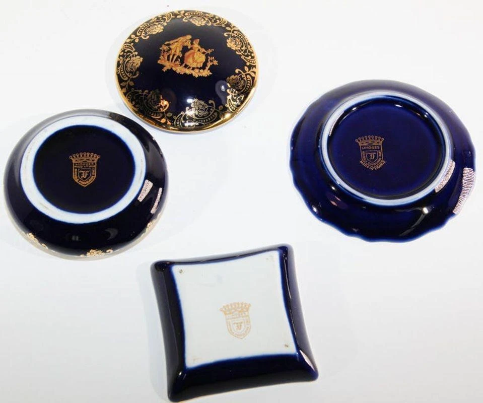 French vintage Limoges porcelain in cobalt royal blue with fine gold decor.