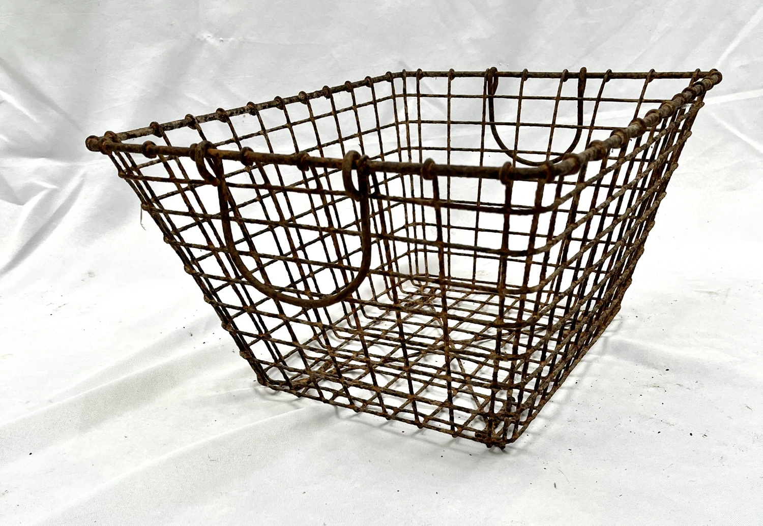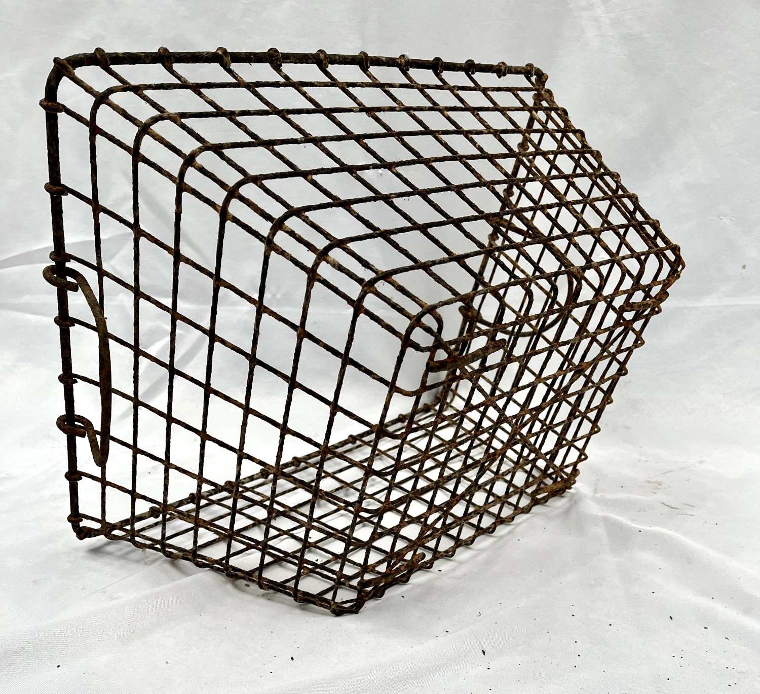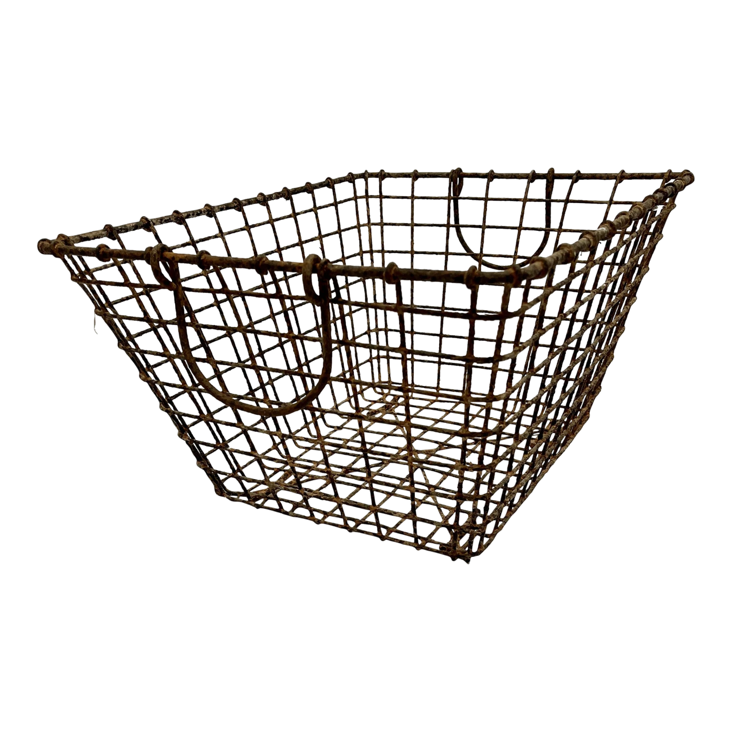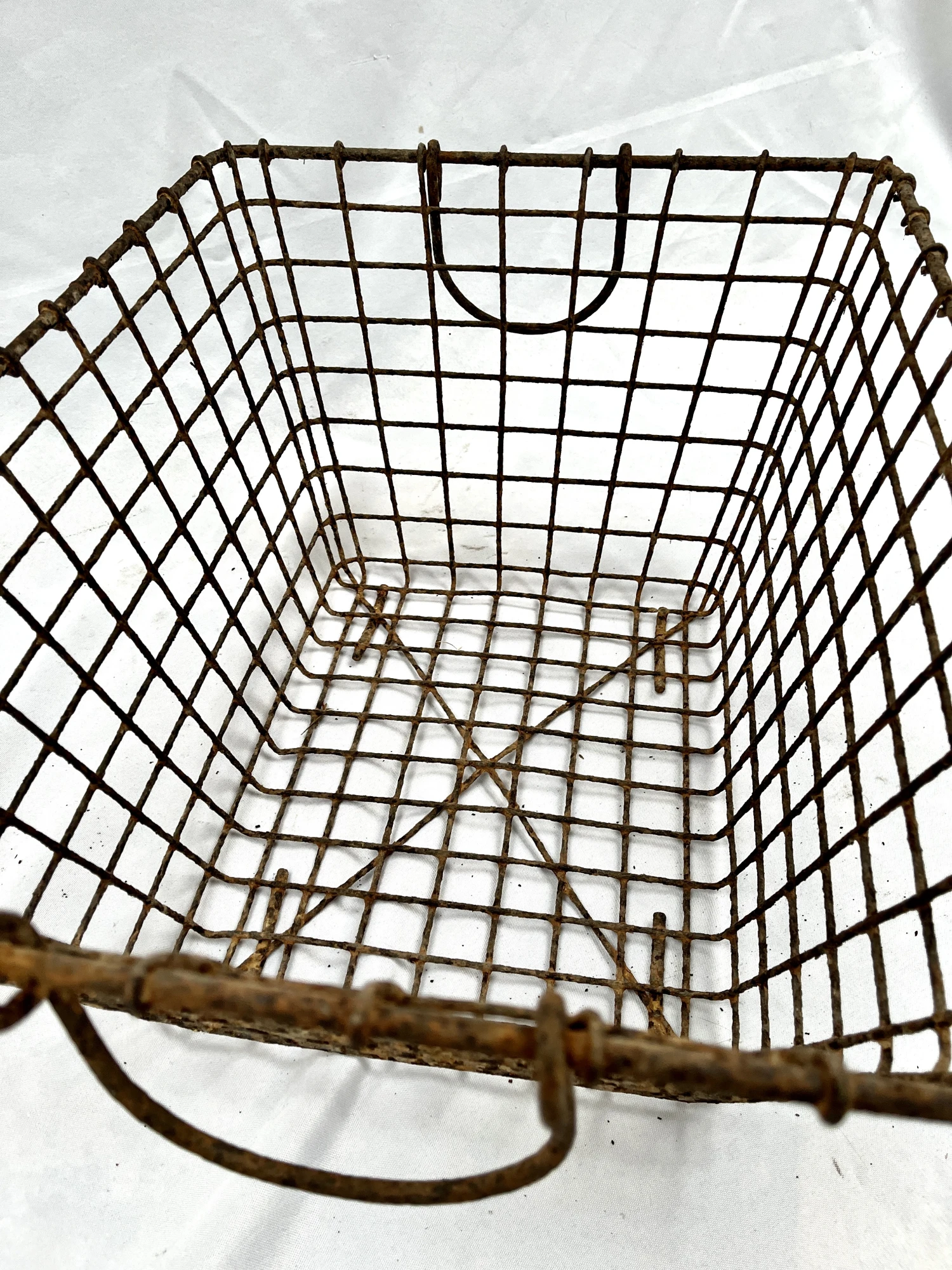 Early 1900s French metal wire oyster basket. Stackable with folding handles at each end. Originally created to grow oysters in …