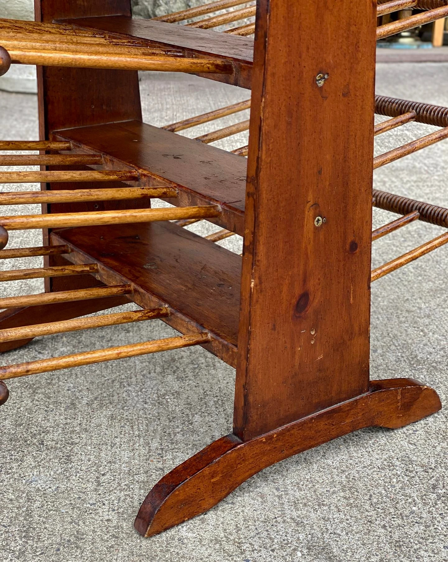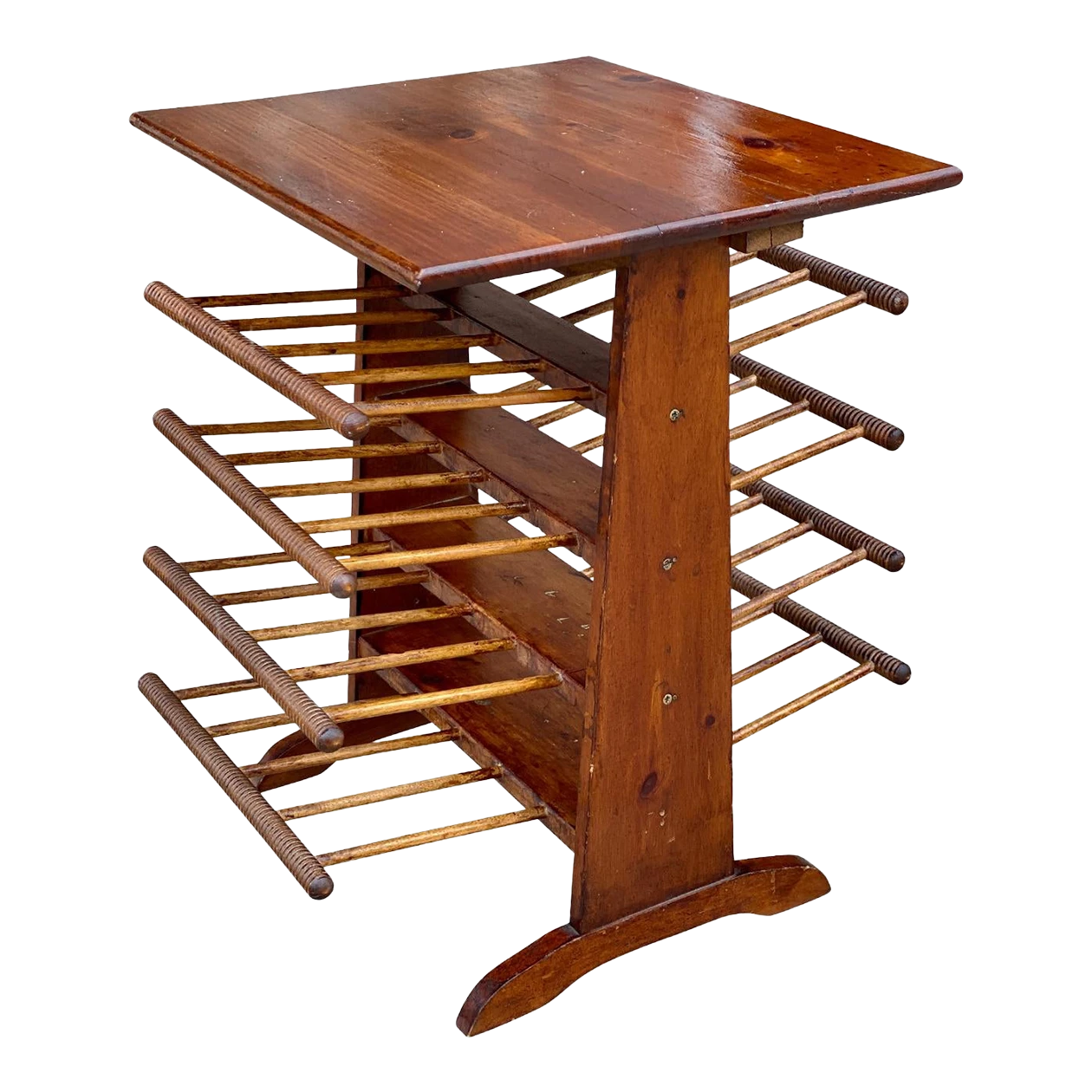 Vintage Farmhouse Turned Pine Spindle Magazine Record Holder Rack, c. Mid 20th Century