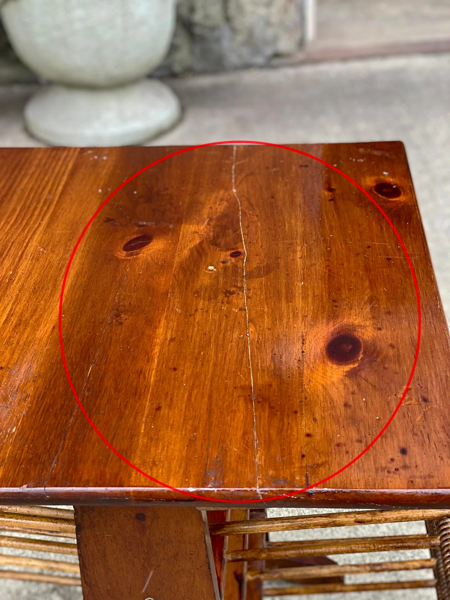This Magazine (or Record) Stand was exceptionally well made, it’s both solid and sturdy. A crack along the top surface is shown, this area is circled in our photo gallery to reference. The piece was refinished and shows mild repairs from age.