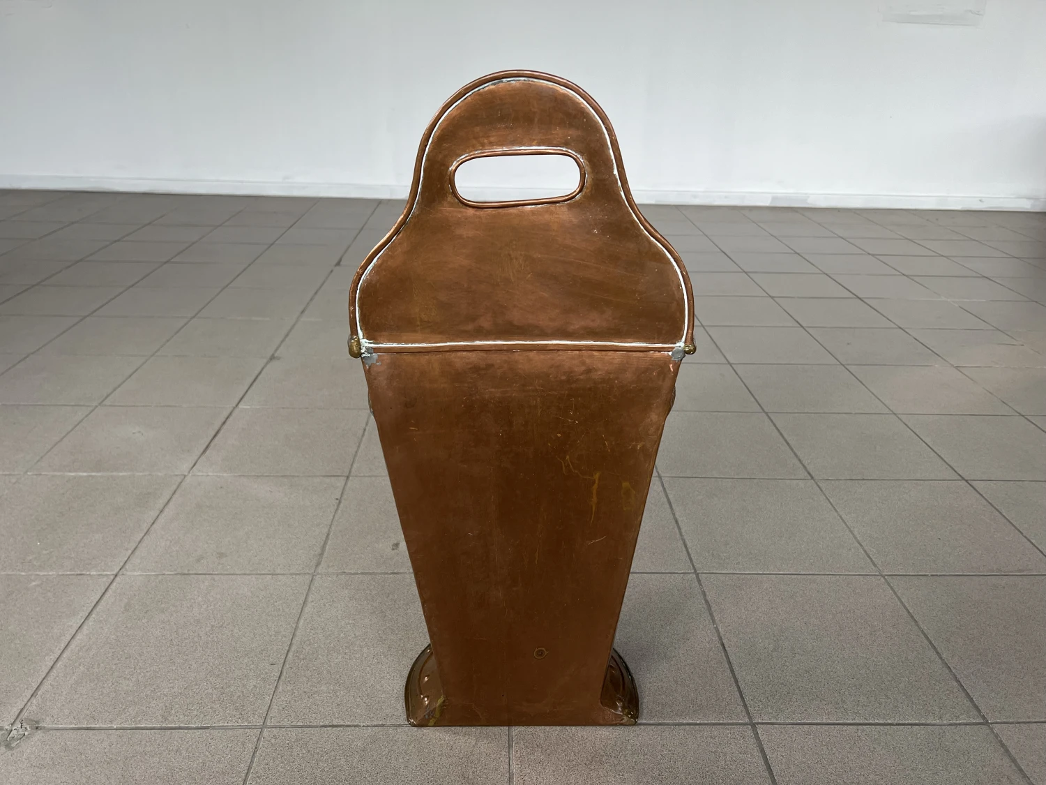 Vintage French Copper Freestanding Umbrella Stand or Stick Holder With Handle. A lovely hand made copper vase, stick stand or umbrella holder with half cylindrical base. A strong and stable piece, with great visual impact, it will hold several sticks and/or umbrellas. Lovely vintage condition with some minor oxidation traces and wear marks. A charming piece to hold umbrellas, sticks, flowers or canes.