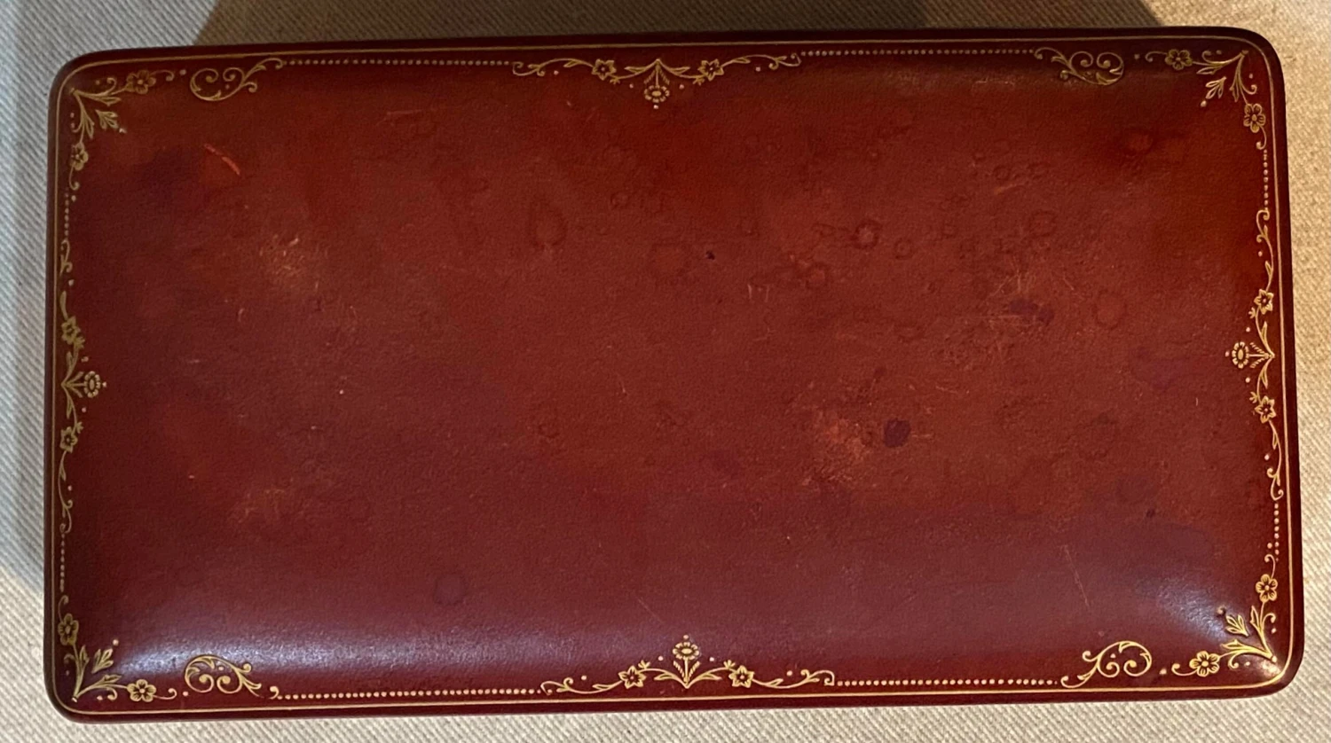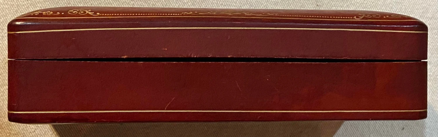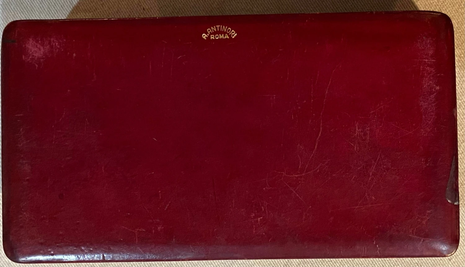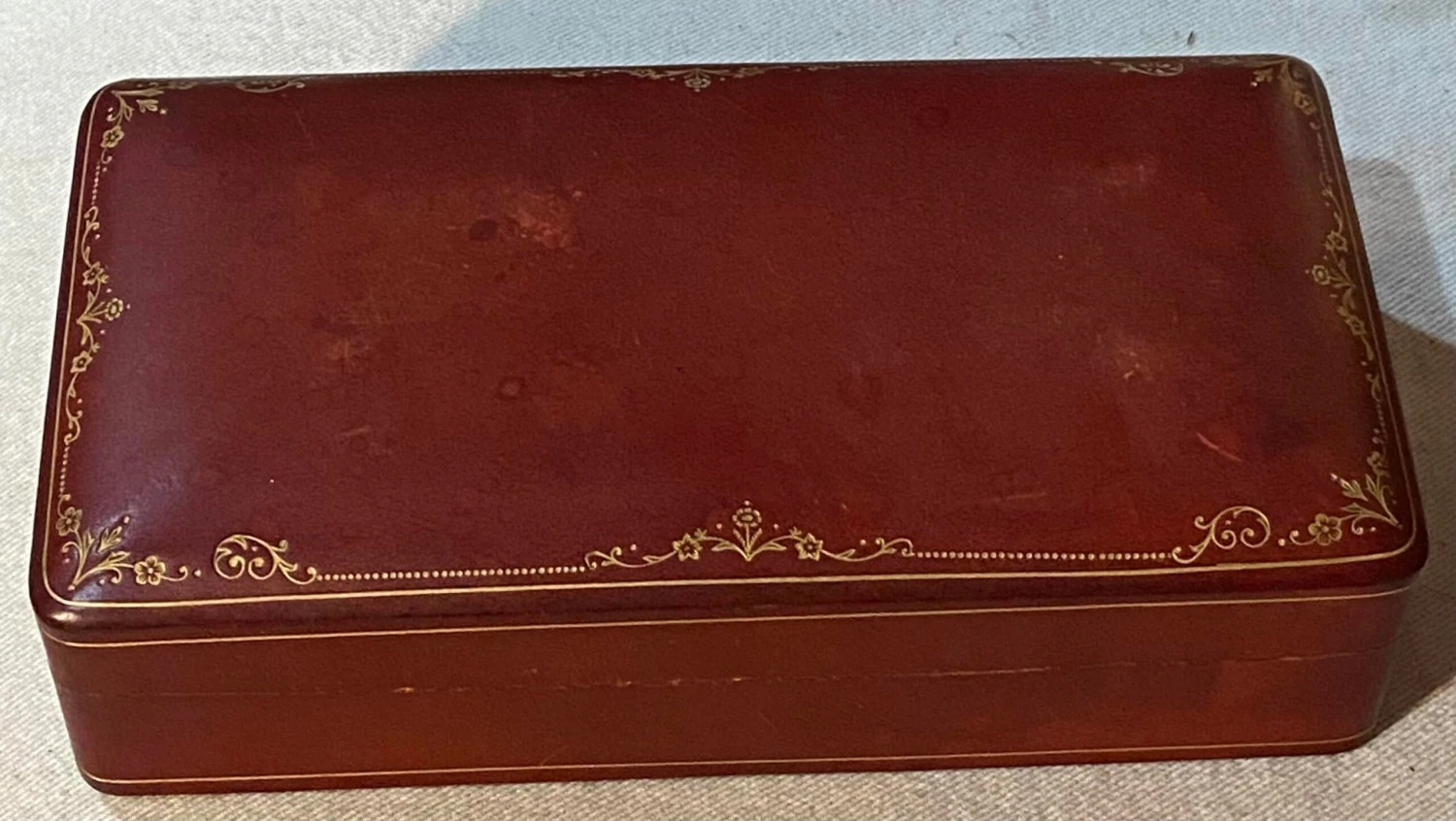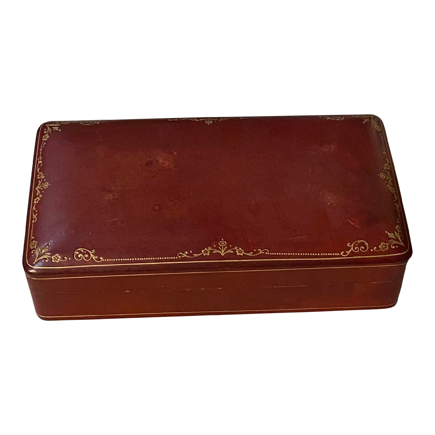 Vintage Italian A. Antinori Leather Box. Beautiful leather on the exterior and interior. The edge of the top has a gilt tooled design. Please see our listing for a smaller size. From a Normandy, France estate.