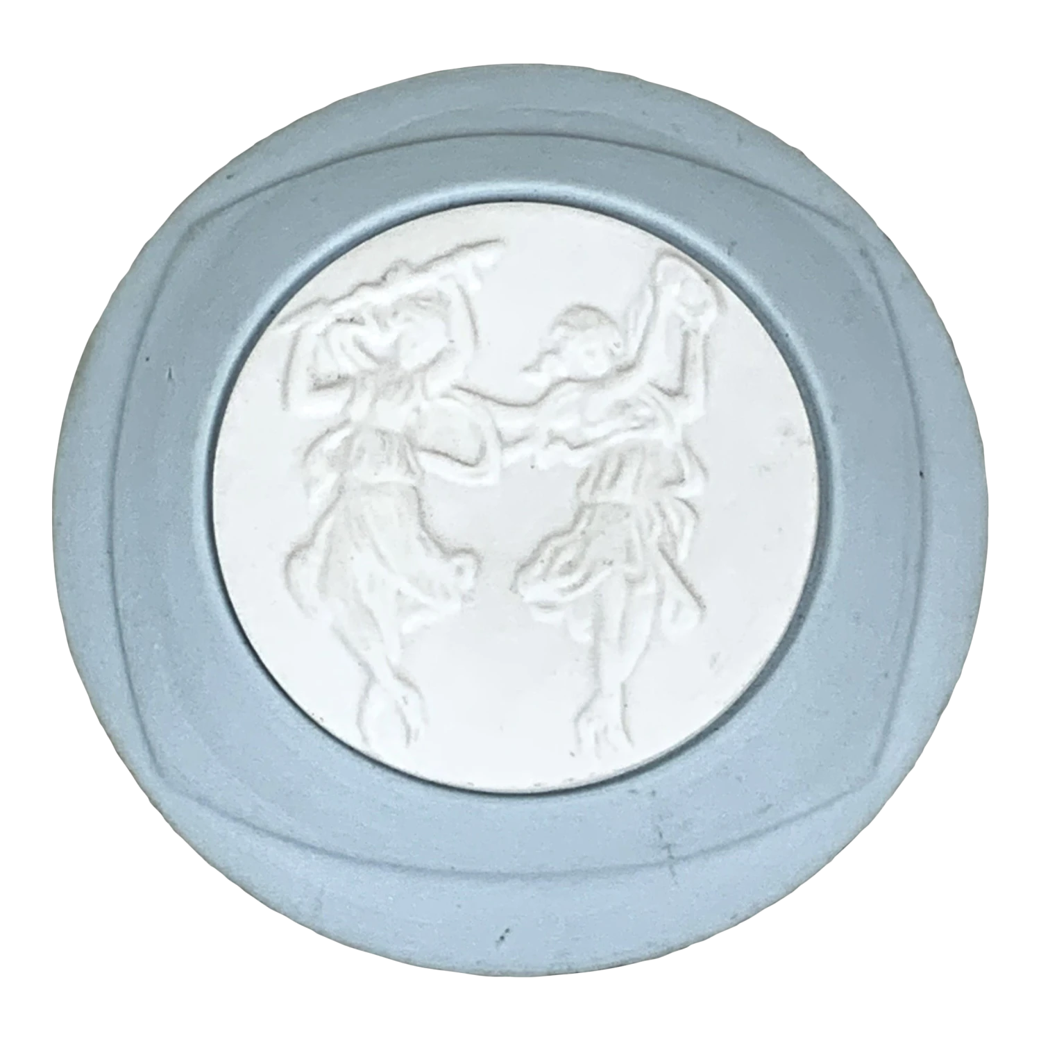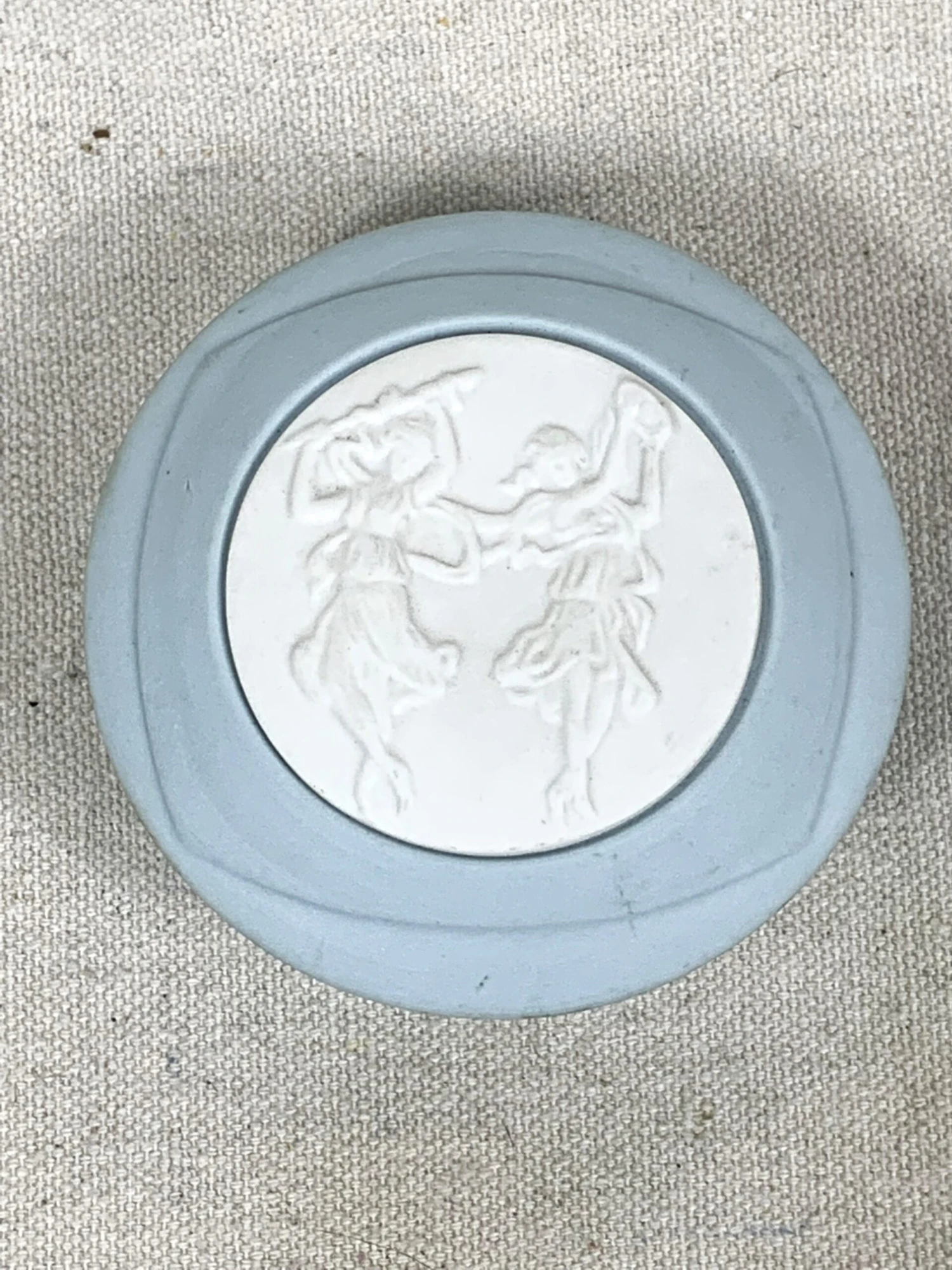 Vintage Theraud Limoges, France, blue and white trinket box decorated with dancing nymphs. This is a pre-owned item so please …