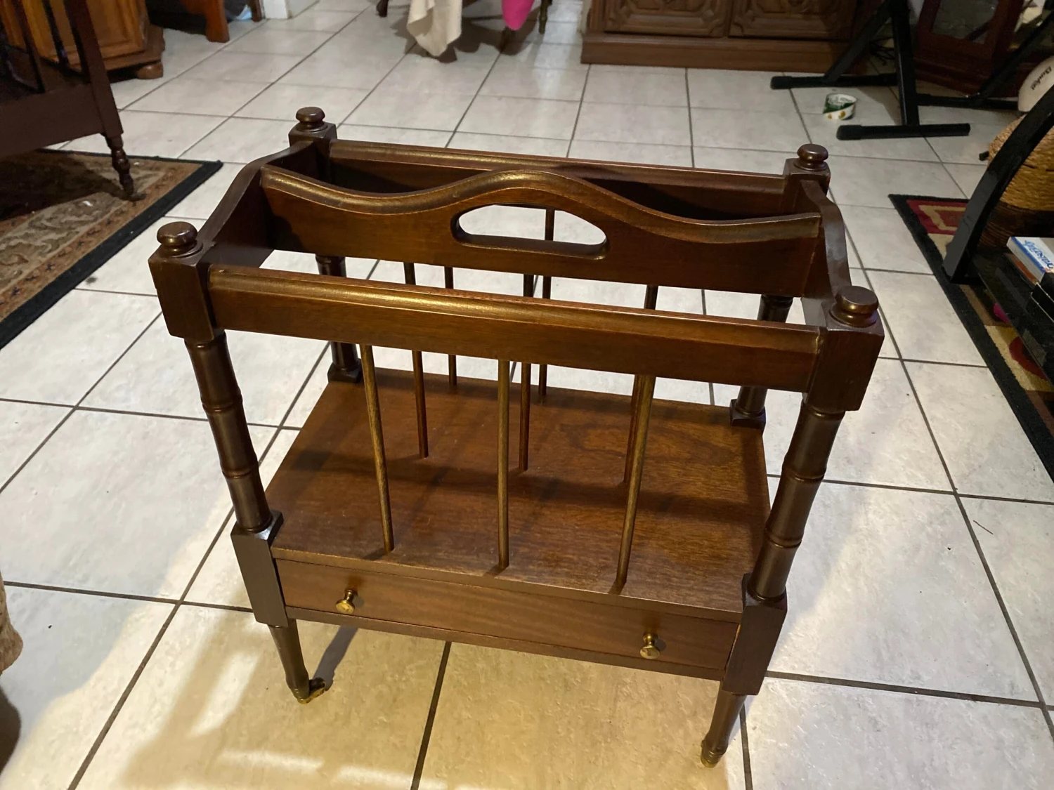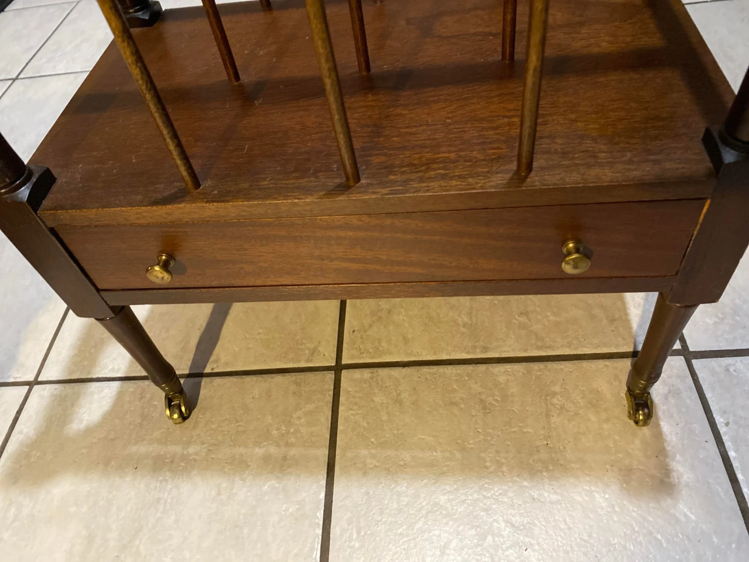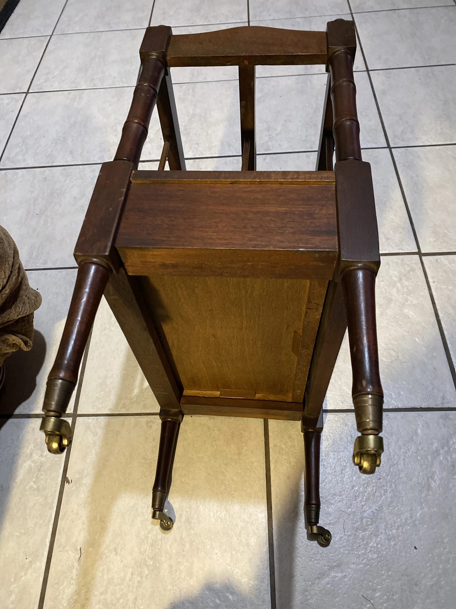 Nice vintage mahogany dovetailed pull front drawer magazine rack in great condition. It has four rolling wheels and measures approx. …