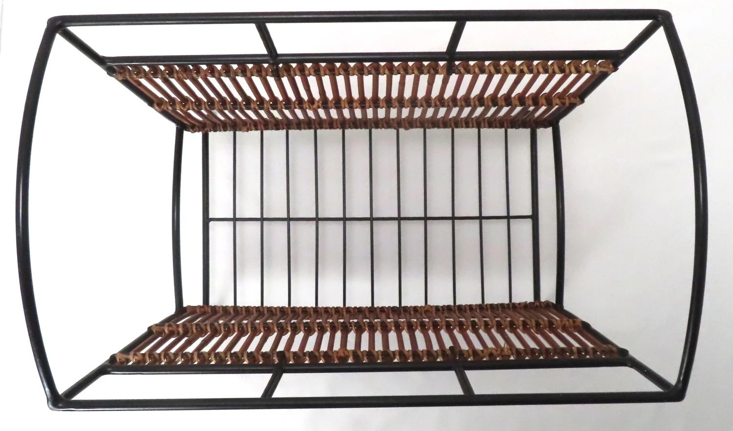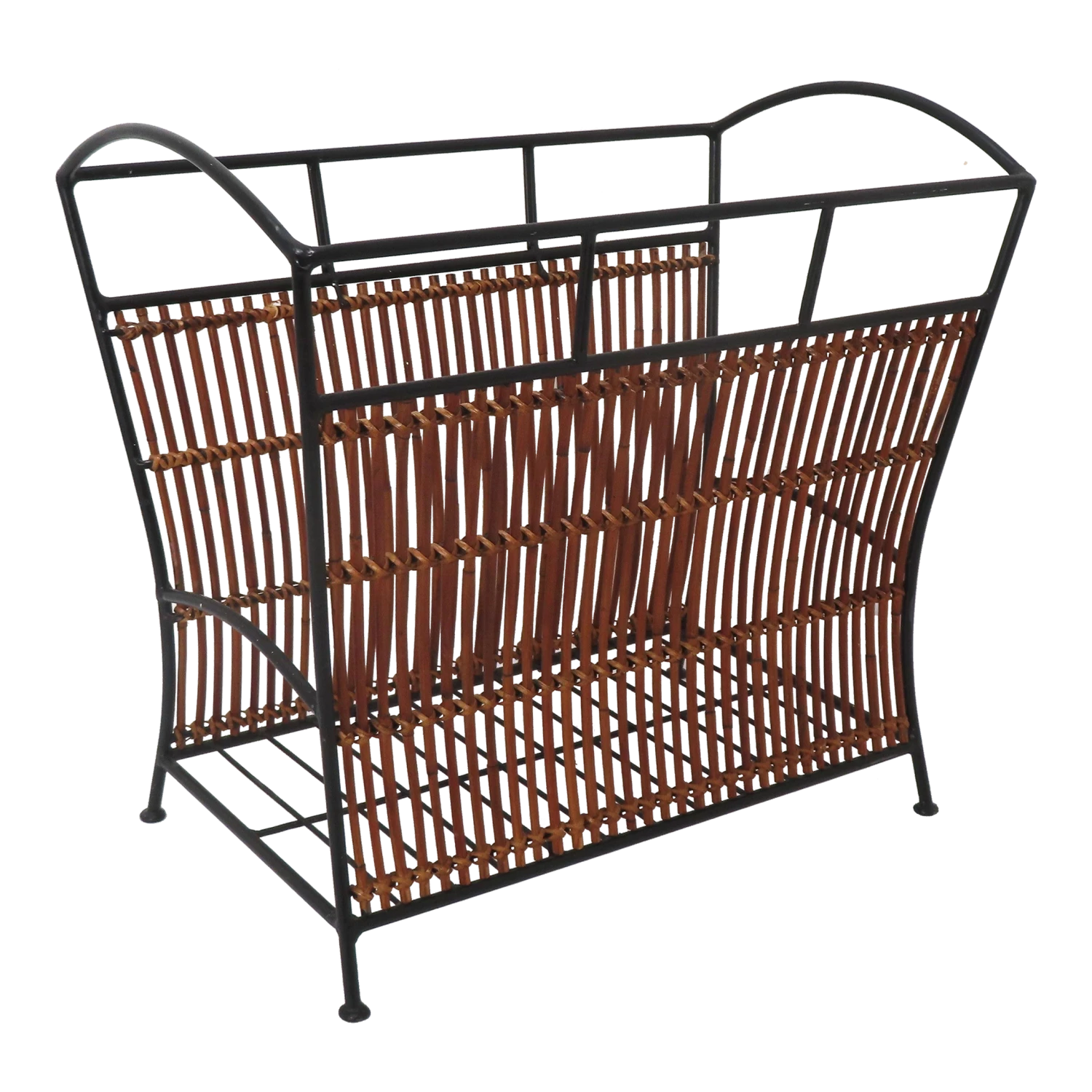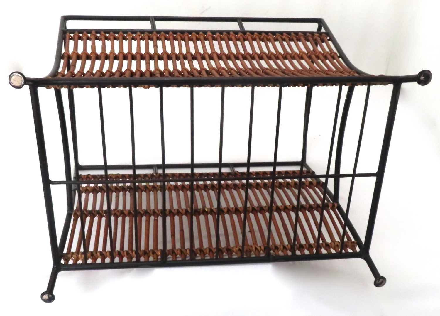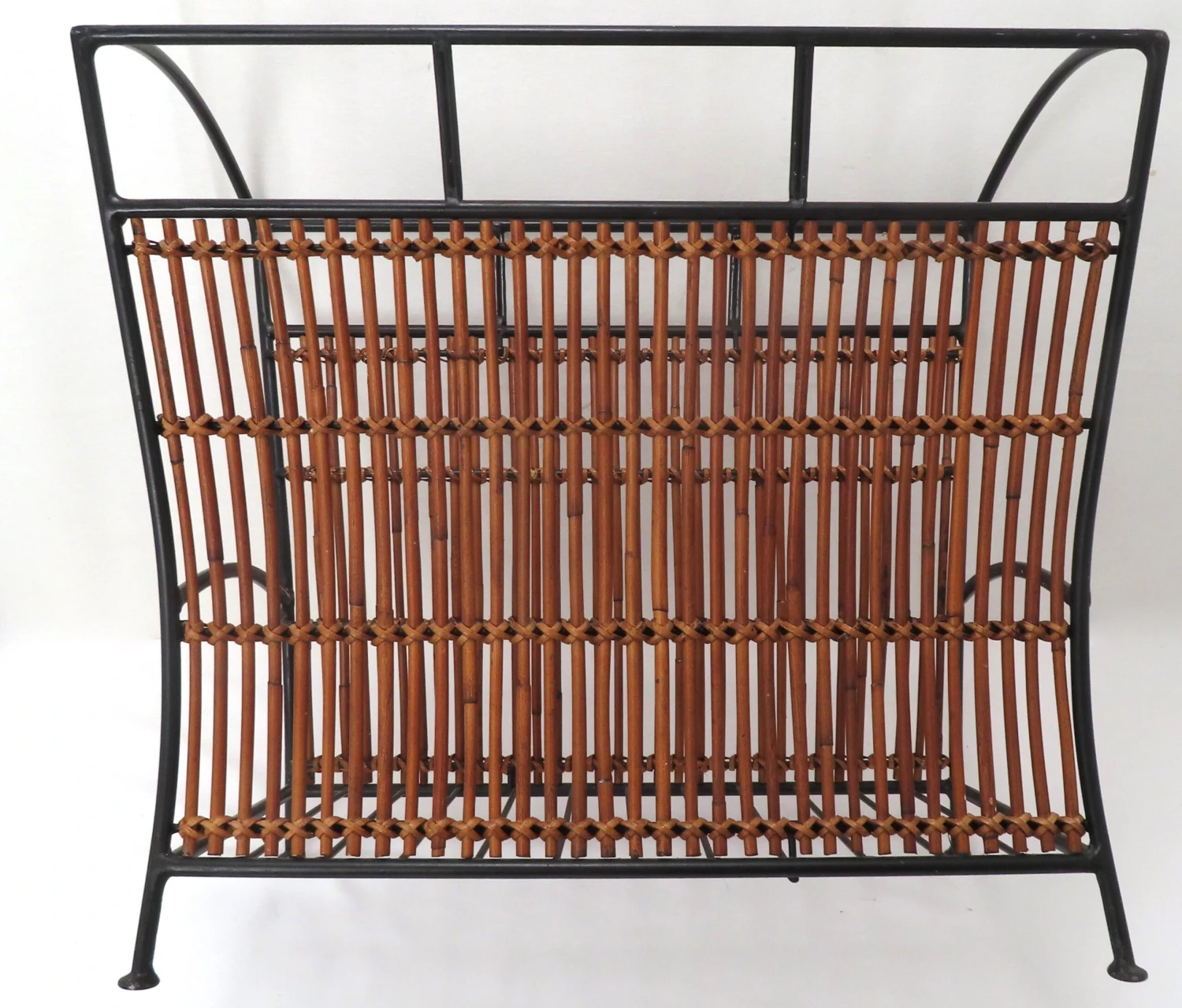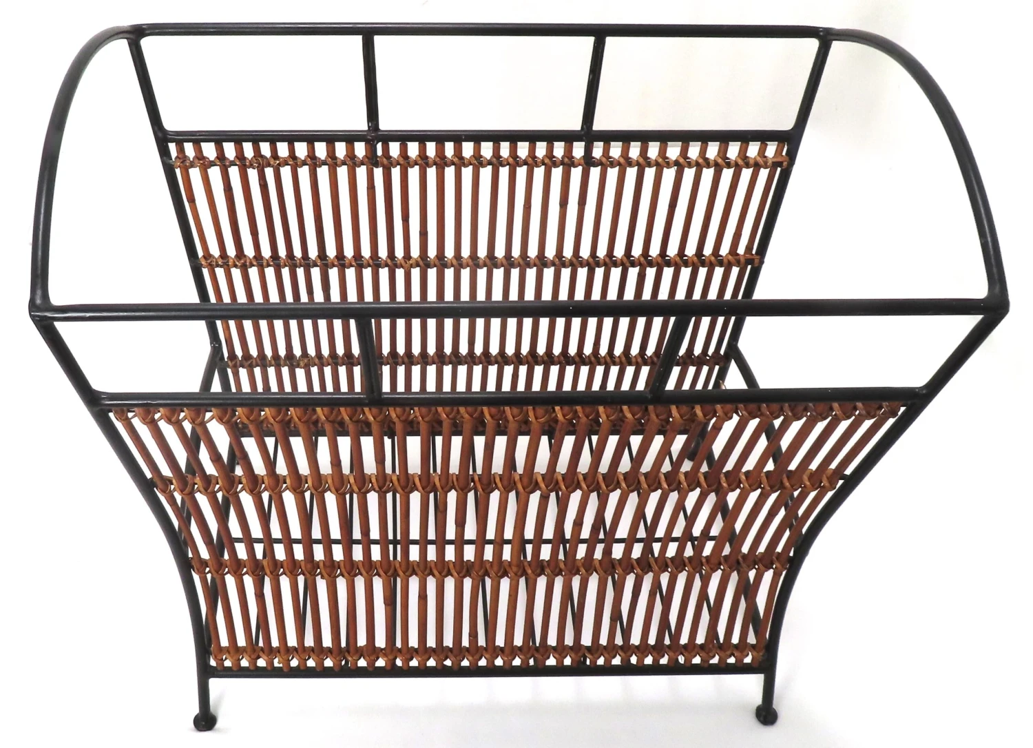 The Structure is Completely Hand Made out of Wrought Iron with Hand Woven Bamboo and Wicker Side Panels. It has No Maker Marks but it is a Very Good Quality – Durable and Usable Piece. Note that it Could Also Possibly Be Used for Record Albums. It is in Excellent Condition – No Damage – Displays Beautifully.