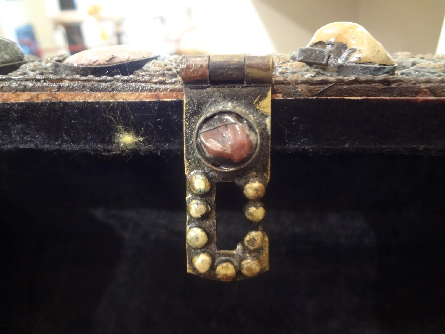 Vintage Moorish Agate Encrusted Metal Box. This Interesting Large Silver Middle Eastern Metal Decorative Box Is Encrusted With Multi-Colored Agate …