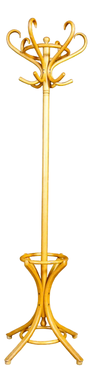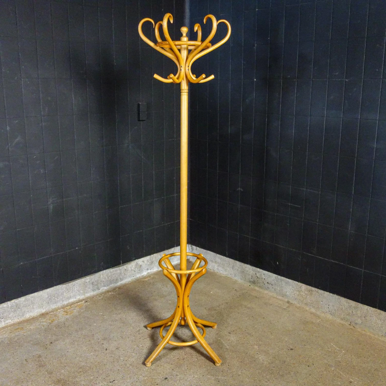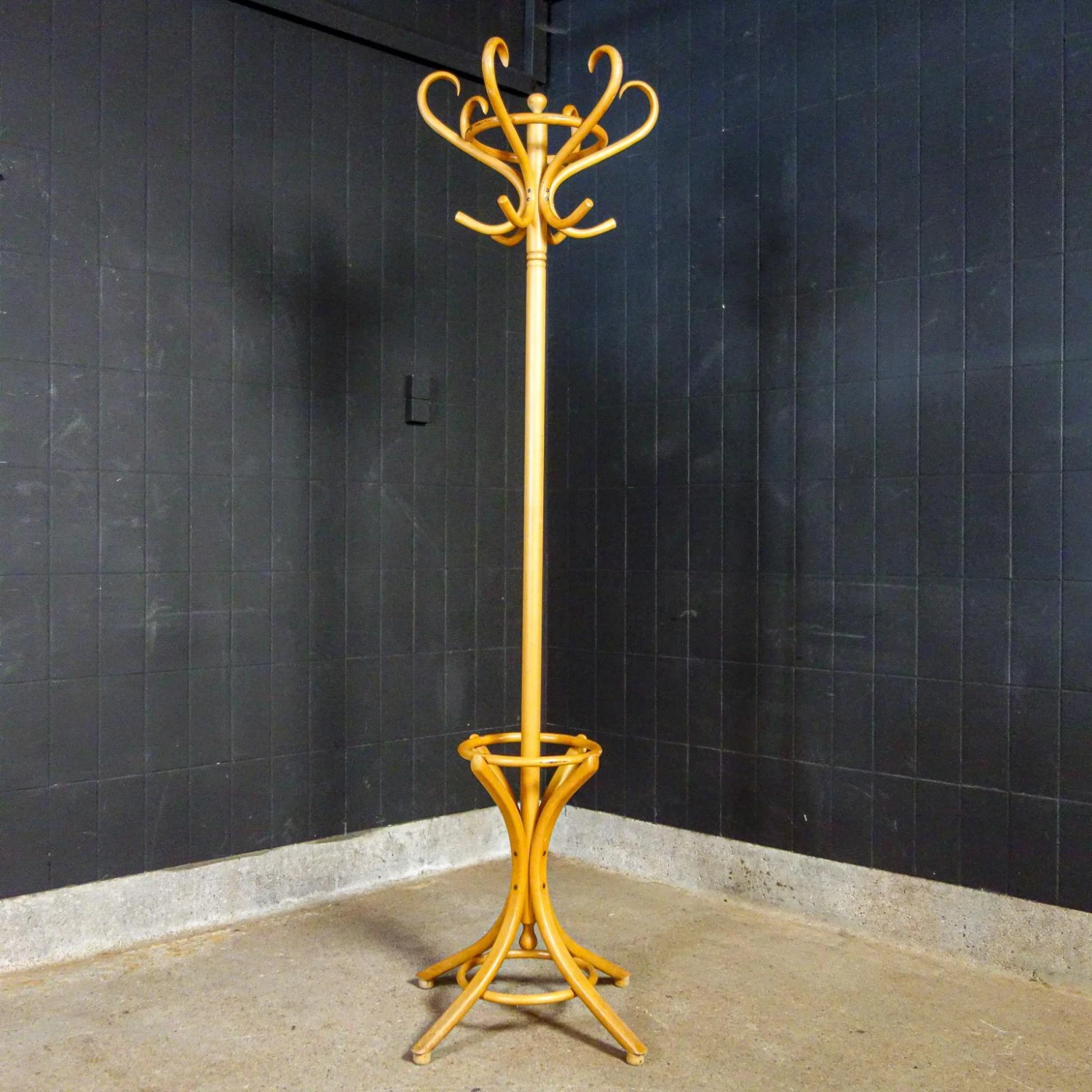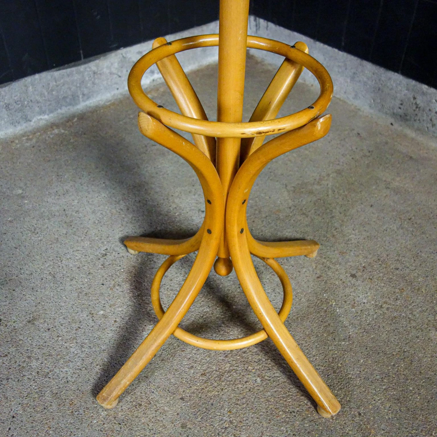 This vintage -standing coat rack dates from the 50s and is designed in typical Thonet style. It is still in very good condition after half a century! It is perfect for aiming your hat from a distance! . or of course just hang your jacket on. Dimensions: 194 cm high, 50 cm diameter