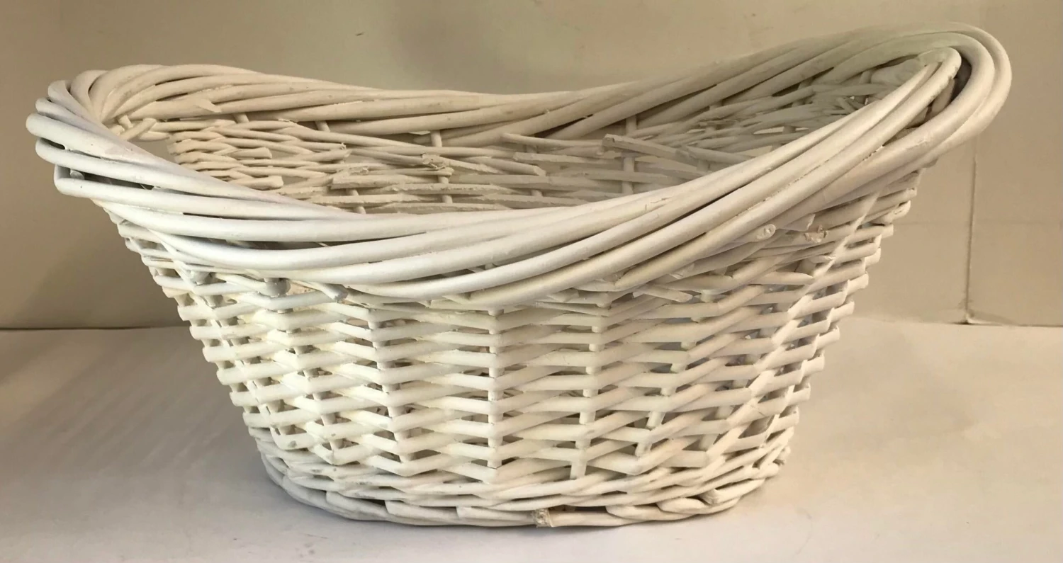 Nice vintage white wicker basket with handles. Great for carrying or storage or decor!