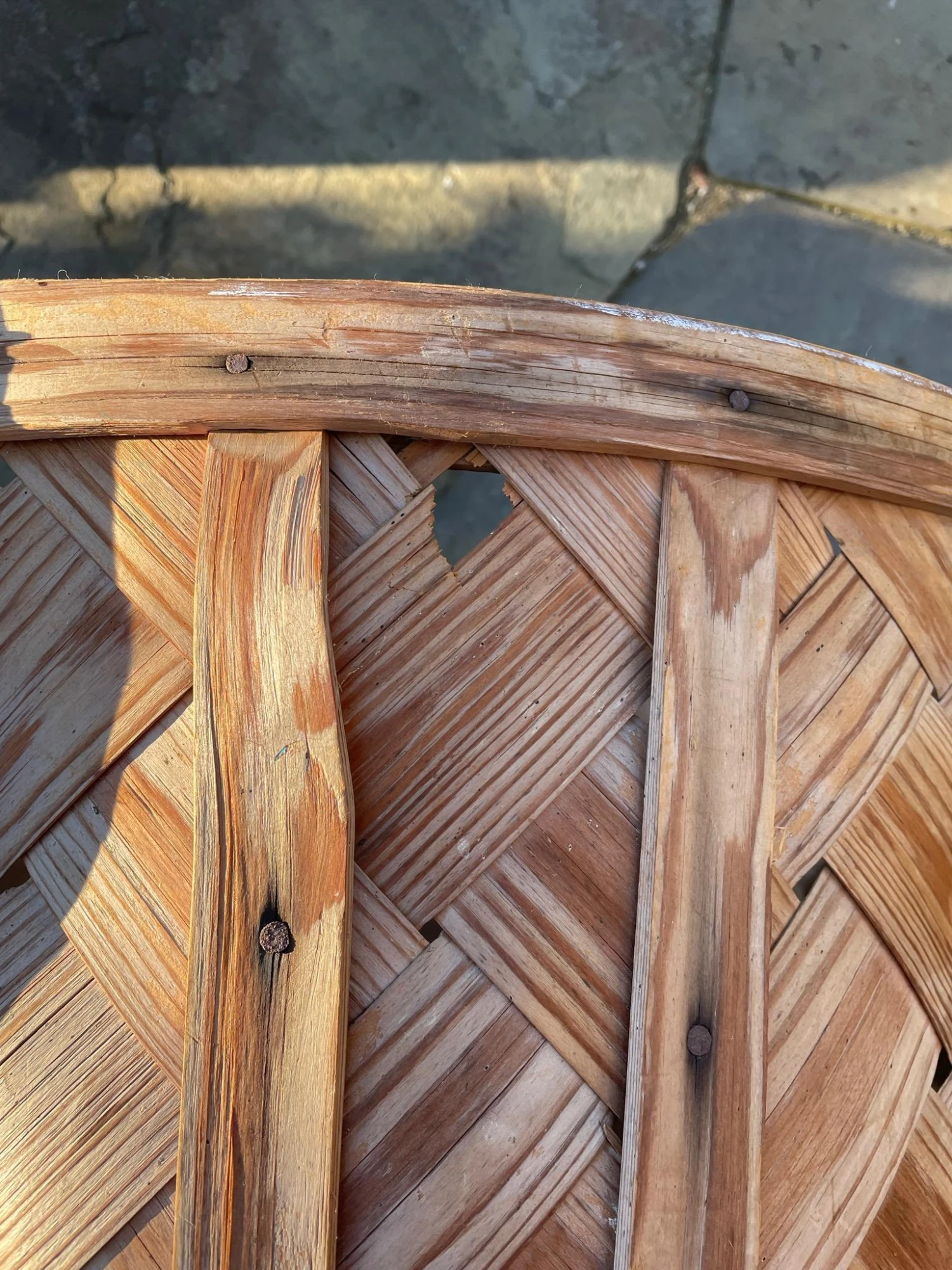 Fabulous large 25″ high (21″high without handles) double handled woven basket. Great for logs next to the fireplace or for extra towels in the bathroom.