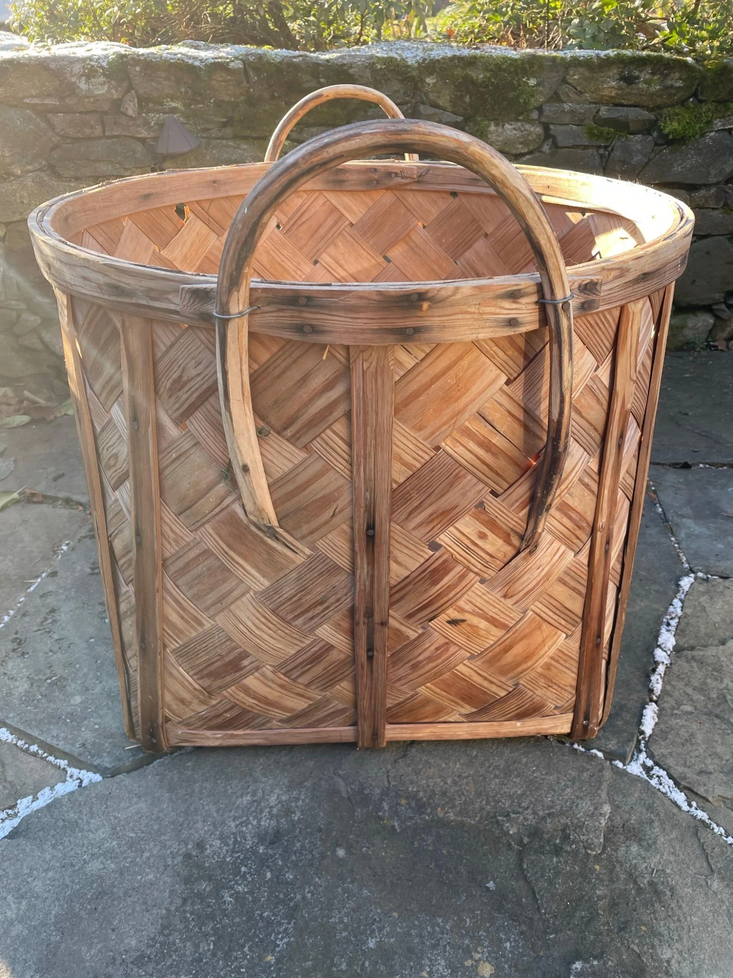 Fabulous large 25″ high (21″high without handles) double handled woven basket. Great for logs next to the fireplace or for …
