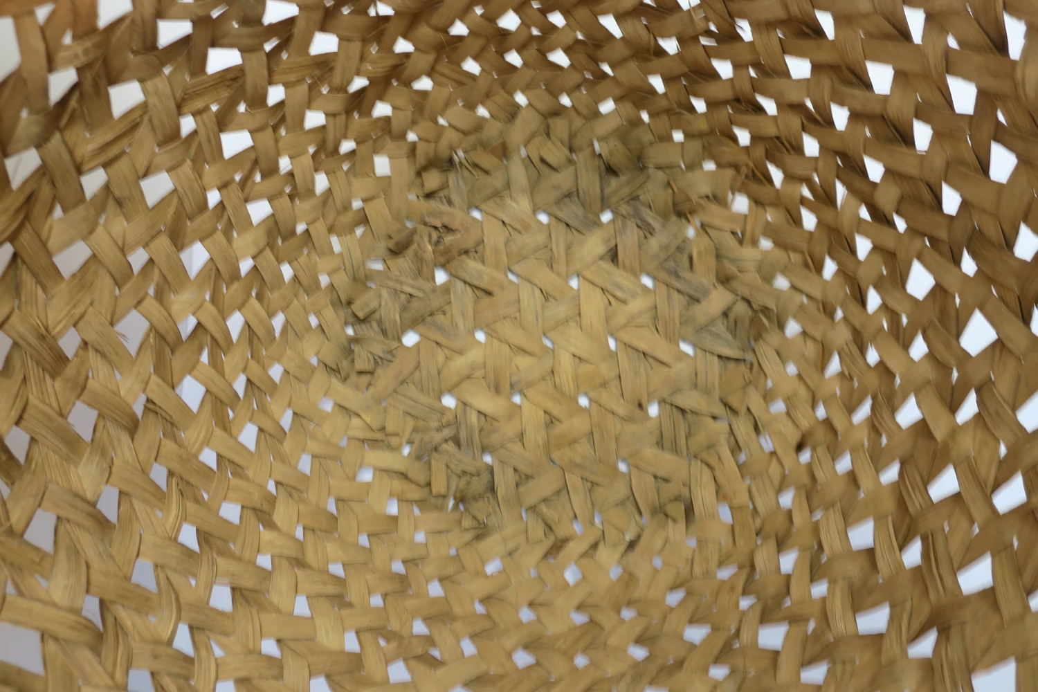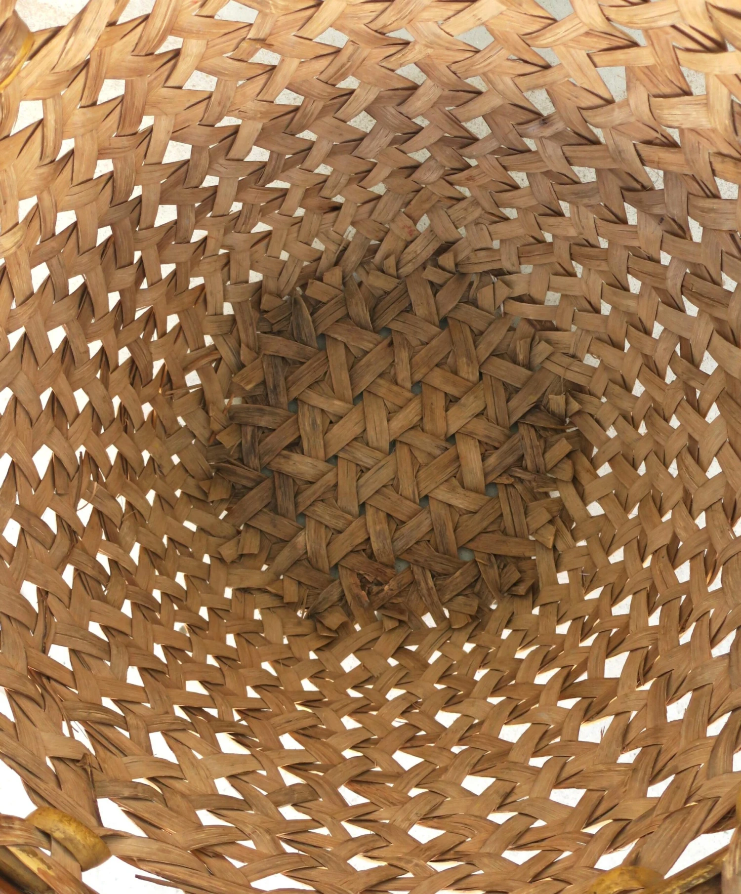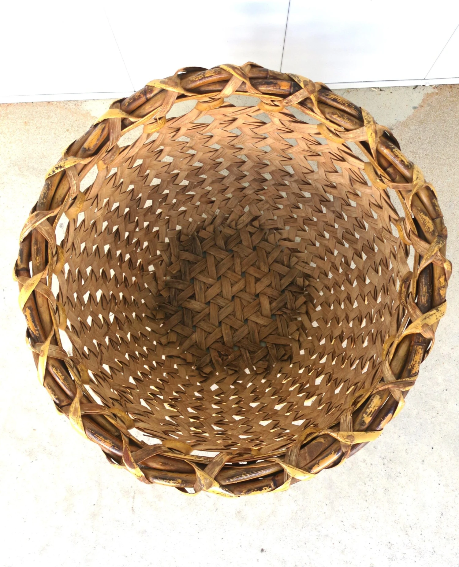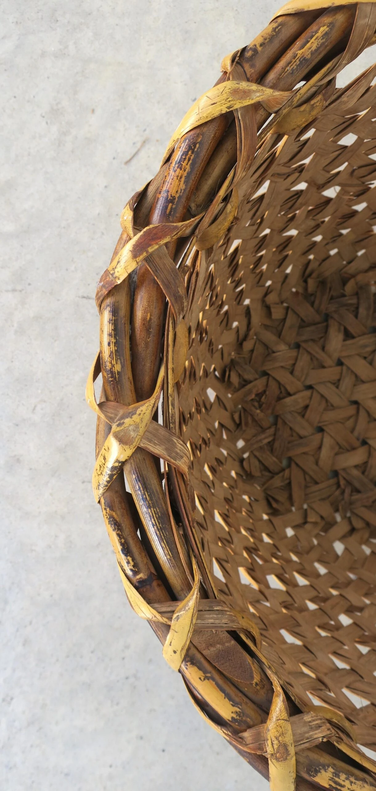 A hand-woven vintage wicker basket, circa mid-20th century, 1960s – 1970s.